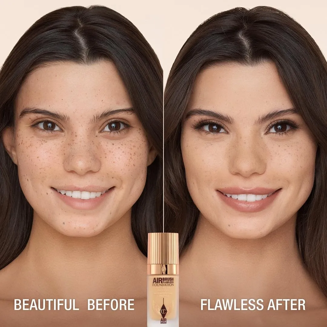 Матова, не плоска, розмиваюча основа Airbrush Flawless Foundation від Charlotte Tilbury забезпечує повне покриття та контроль блиску протягом 24 годин.
