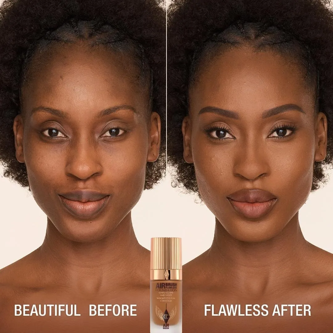 Матова, не плоска, розмиваюча основа Airbrush Flawless Foundation від Charlotte Tilbury забезпечує повне покриття та контроль блиску протягом 24 годин.