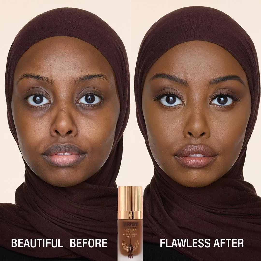Матова, не плоска, розмиваюча основа Airbrush Flawless Foundation від Charlotte Tilbury забезпечує повне покриття та контроль блиску протягом 24 годин.