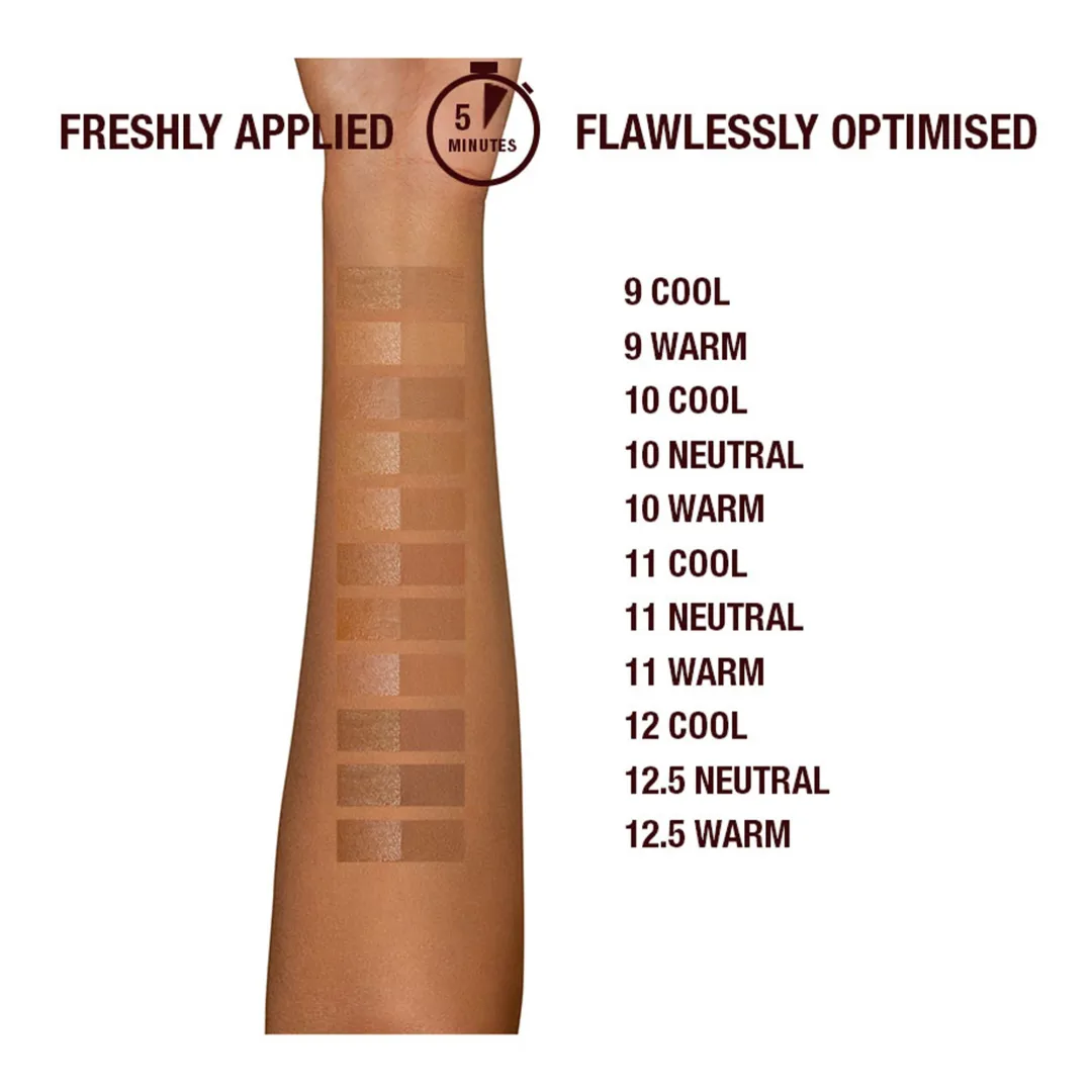 Стійка та невагома формула з повним покриттям легко наноситься на шкіру, забезпечуючи гладеньке, природне матове покриття, стійке до розтікання та потовиділення. Вийшовши за рамки, Шарлотта наділила цього героя шкіри обличчя великою кількістю інгредієнтів, які зволожують, захищають від шкідливих забруднювачів, дарують свіжий охолоджуючий ефект і навіть зменшують видимість зморшок. А ще - широка палітра відтінків, що може похвалитися відтінками, розробленими з урахуванням як півтонів, так і обертонів. Доступні у холодних, нейтральних і теплих відтінках, зі світлими, середніми, засмаглими та глибокими обертонами, знайти ідеальний відтінок для вас не складе труднощів.