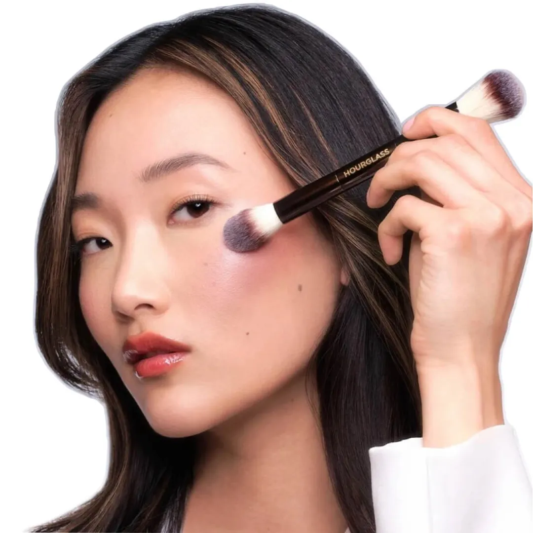 Закруглений кінець ідеально підходить для нанесення фінішної пудри та бронзера на скроні й у западини щік, а загострений бік створений для точного нанесення рум’ян і хайлайтера.
