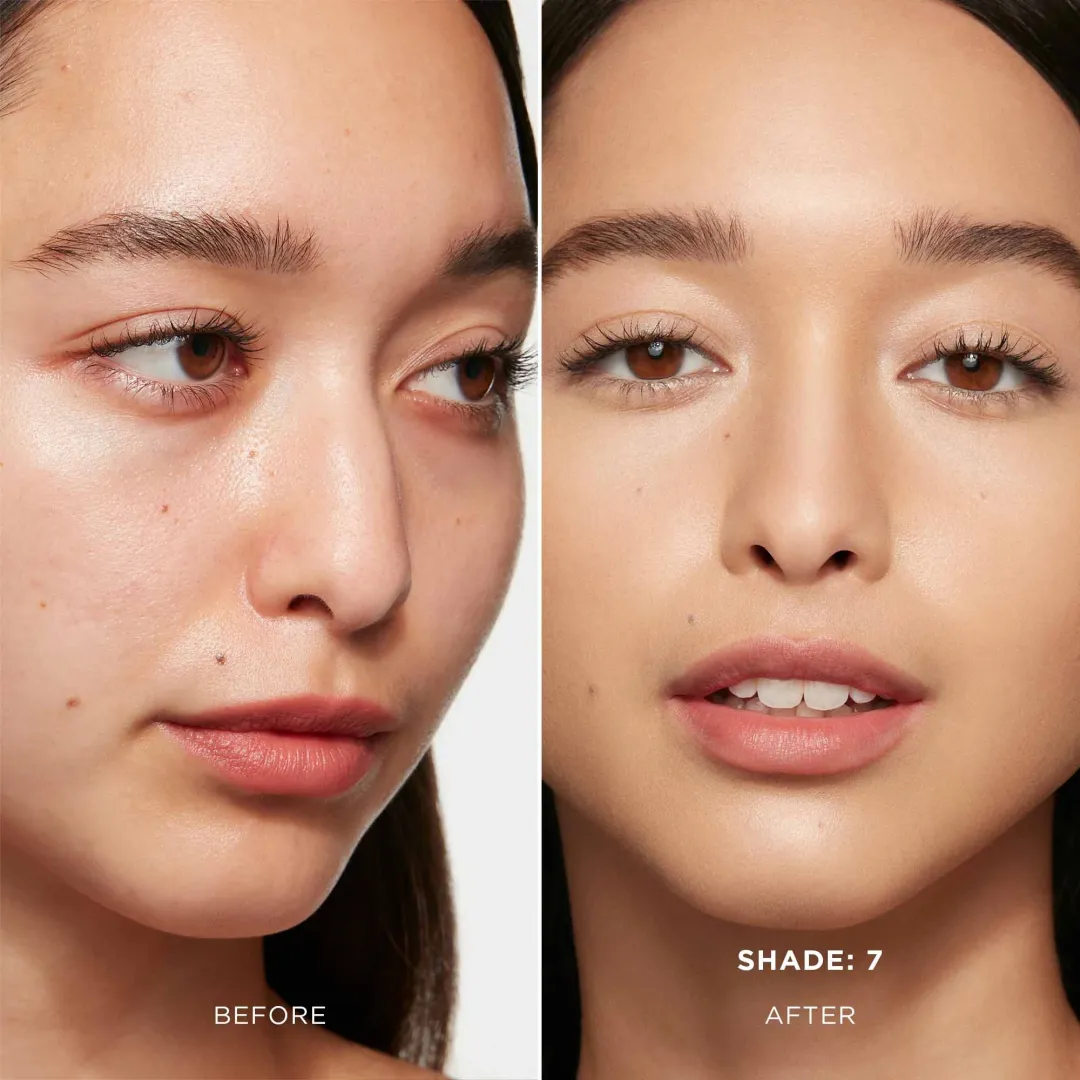 Підготуйте шкіру за допомогою зволожуючого крему та праймера, нанесіть кількість тонального крему розміром з горошину на центр обличчя та розтушуйте назовні за допомогою пензлика Ambient Soft Glow Foundation Brush.