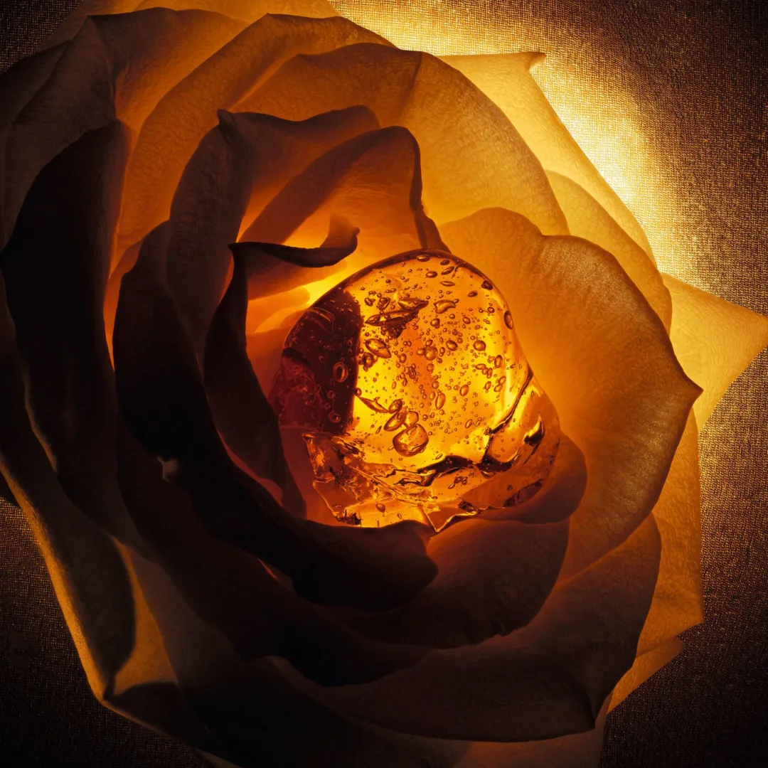 КОЛІР Ambre Nuit багатогранний, з медовим, золотистим сяянням амбри та інтенсивними рожевими барвами турецької троянди, імпозантний, немов оксамитовий гобелен.
