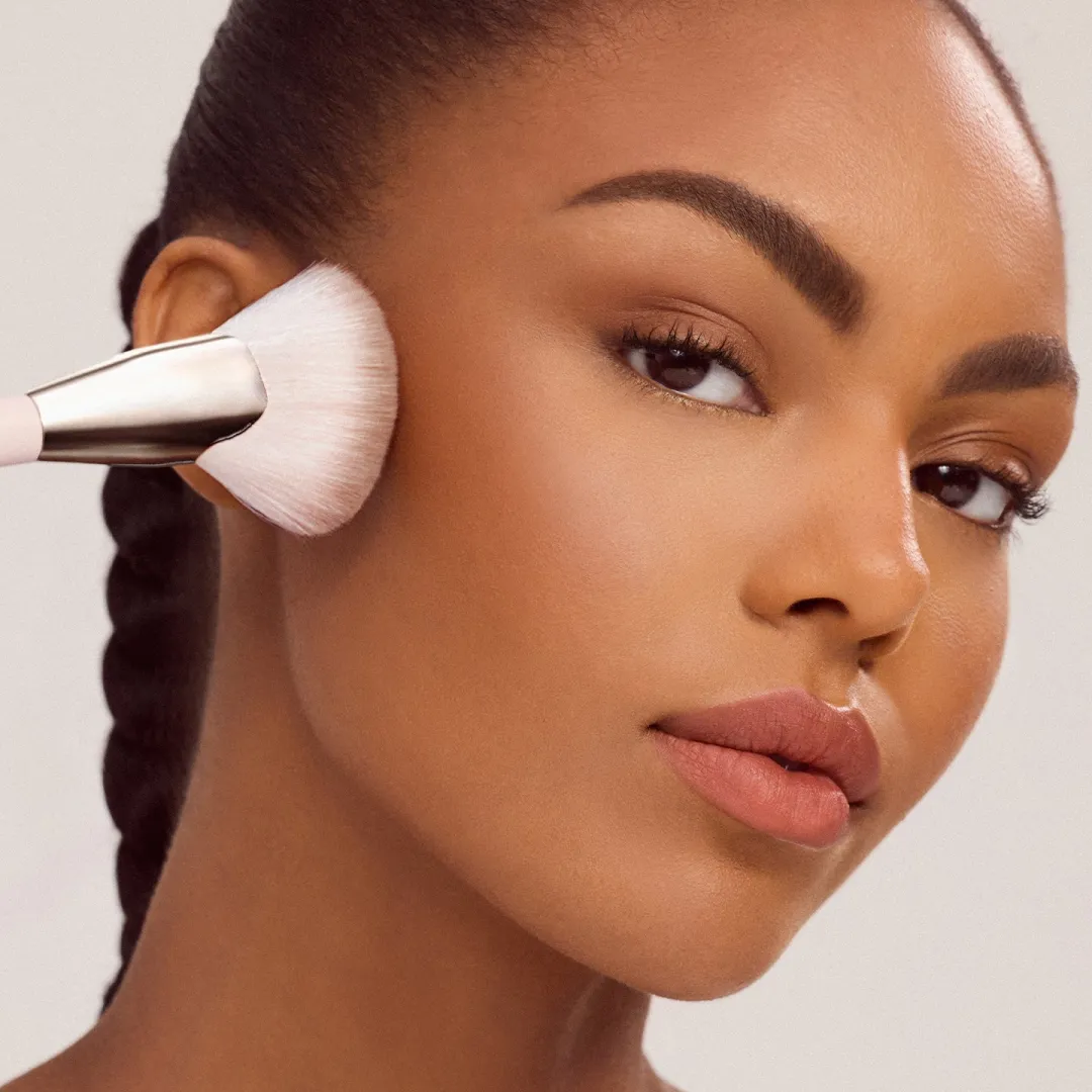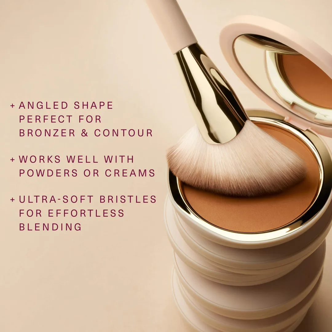 Багатофункціональний пухнастий пензлик з м'яким синтетичним ворсом і унікальною кутовою формою — ідеально підходить для бездоганного нанесення бронзера, рум'ян, фіксуючої пудри та інших засобів.