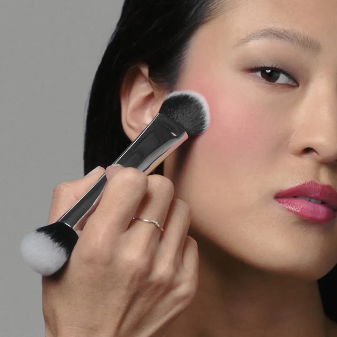 Інноваційний багатофункціональний пензель з надзвичайно м'якою веганською щетиною. Використовуйте будь-яку сторону з кремовими та пудровими формулами для моделювання, виділення та бездоганного розтушовування.