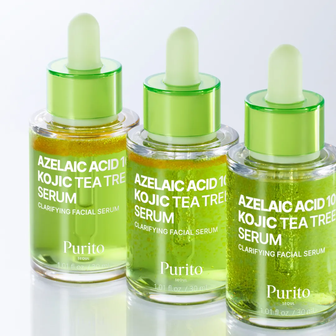 Сироватка з азелаїновою кислотою і чайним деревом Purito Seoul Azelaic Acid 10 Kojic Tea Tree Serum відмінно поліпшує стан шкіри, бореться з висипаннями, акне та слідами постакне, прискорює проникність поживних компонентів, освітлює, регулює вироблення себуму.