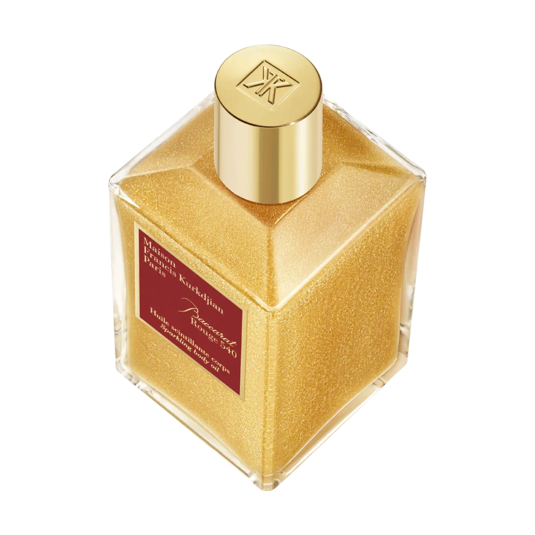 Іскриста олія для тіла Baccarat Rouge 540 — це чуттєве завершення ритуалу краси, яке прикрашає шкіру аурою квіткових, амбрових і деревних нот. Ця блискуча ароматизована олія кольору 24-каратного золота натхненна секретом Rouge à l'or — алхімічним поєднанням кришталю та золотого порошку, яке надає шкірі ніжного блиску та аромату. Перед кожним використанням продукт слід збовтати.