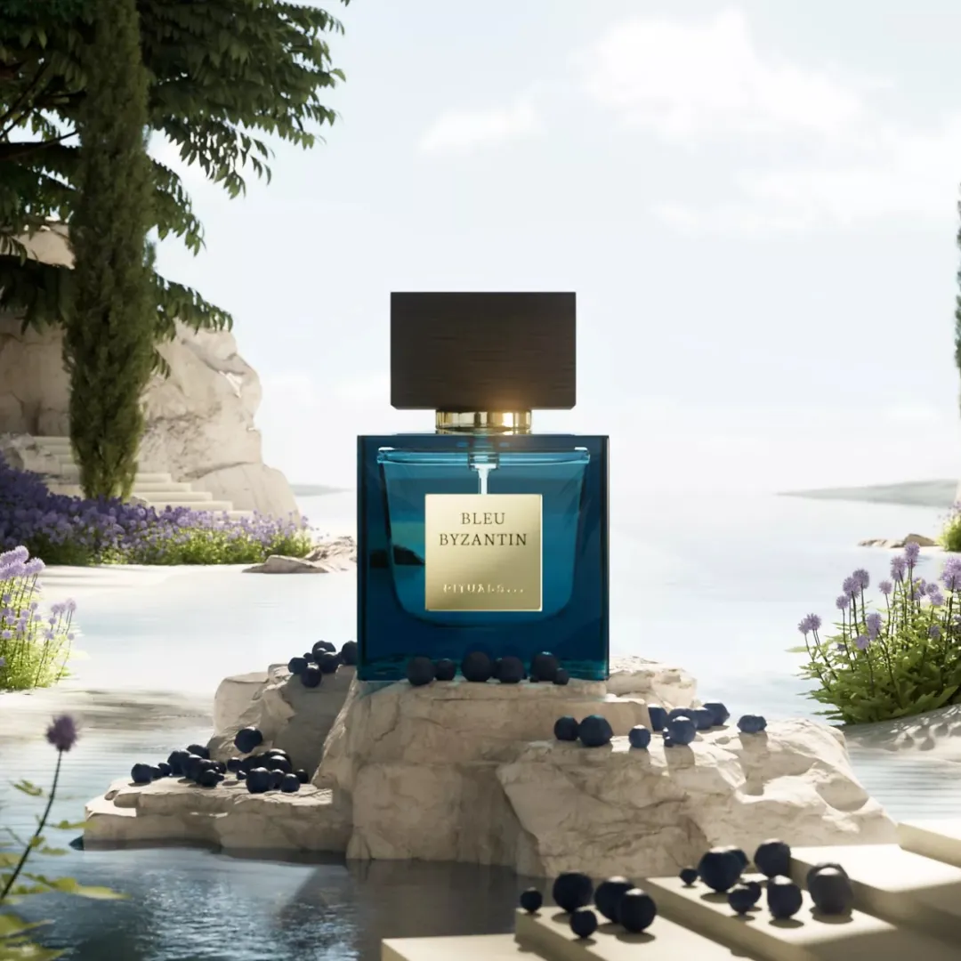 Відчуйте цей прекрасний водний аромат. Bleu Byzantin — це поєднання нот свіжої водної м'яти, сосни та свіжих плодів ялівцю.