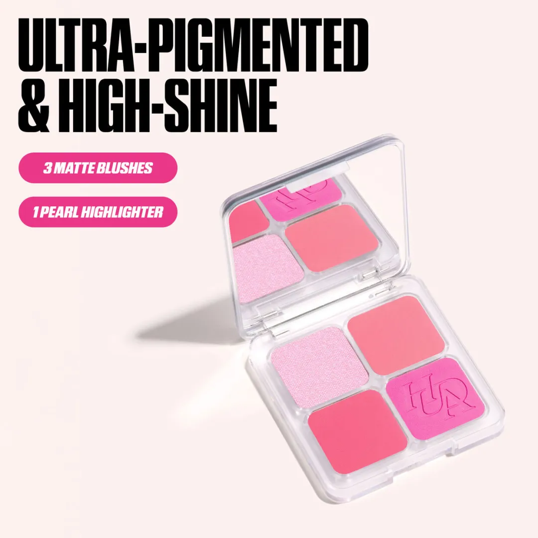 Лімітована ефірна палітра рум’ян із трьома ультрапігментованими матовими пудровими відтінками та одним хайлайтером. Носіть окремо або змішуйте відтінки для створення ефірного сяйва!