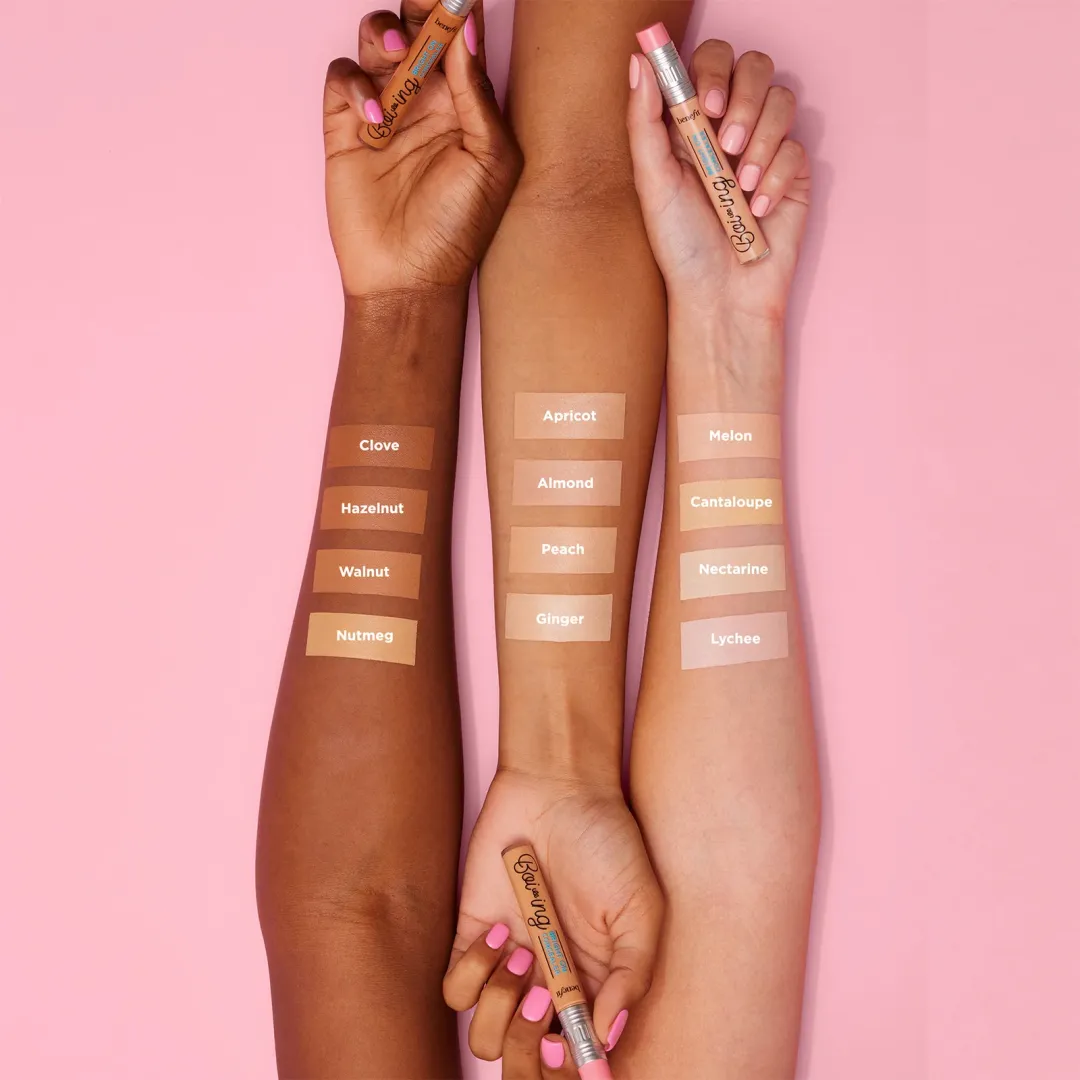 Boi-ing Bright On! рідкий консилер коригує колір, приховує недоліки та освітлює область під очима, а також утримує вологу шкіри. Водостійка формула надлегка та легко розтушовується без ефекту маски, але при цьому дозволяє нашарування скільки завгодно. Крім того, екстракт червоних водоростей і похідне вітаміну C допомагають зробити вашу шкіру помітно яскравішою.
