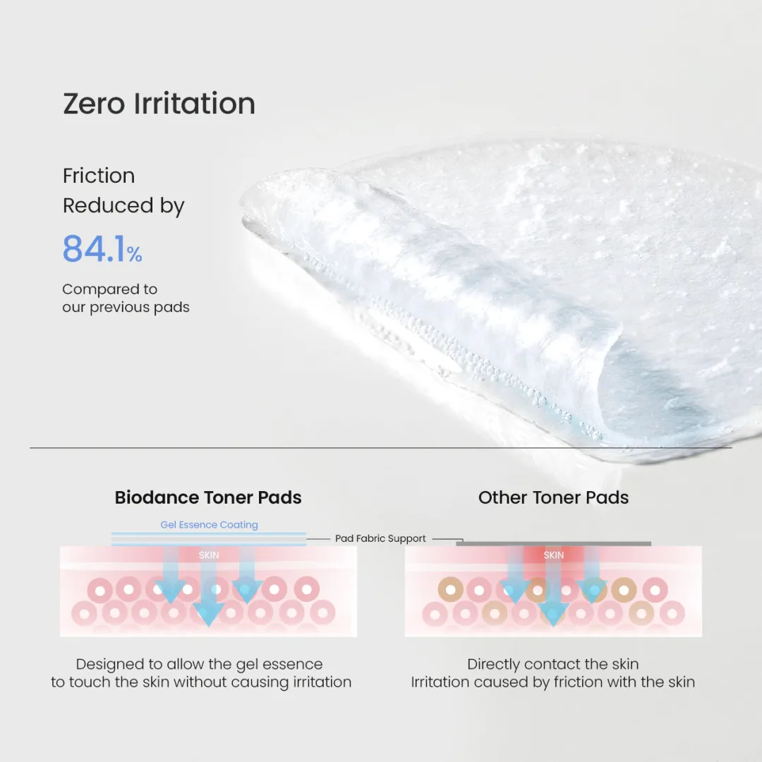 Використовуйте ці тонік-пади щодня для зволоженої шкіри, не турбуючись про подразнення. Вони ніжні та безпечні для чутливої шкіри. Косметичні засоби Biodance зосереджуються на балансі ефективних інгредієнтів і довготривалих результатах, що виходять за межі тимчасового ефекту.