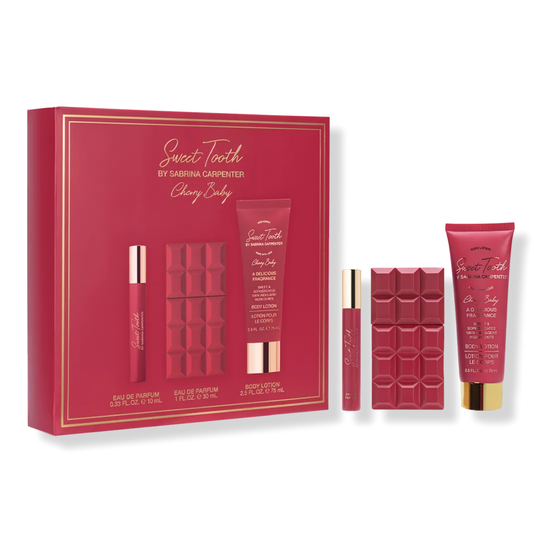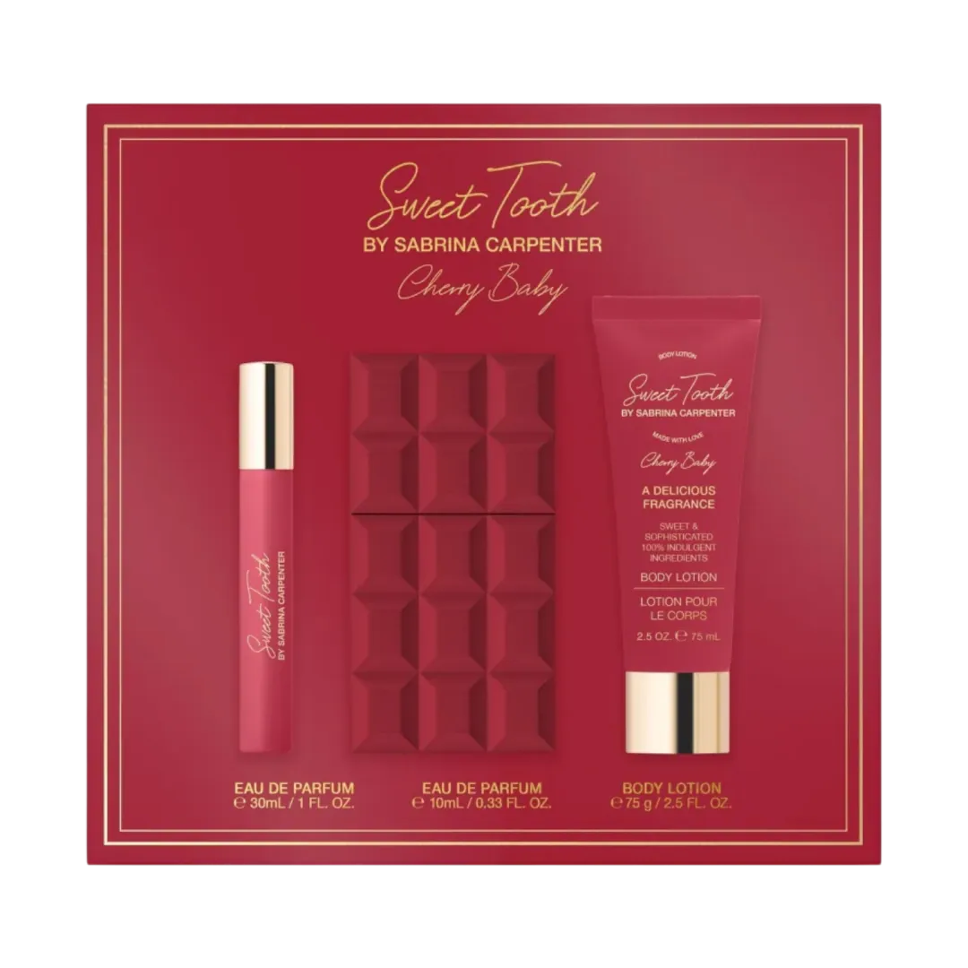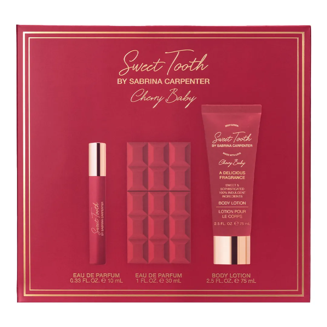 Cherry Baby, розкішний третій аромат у колекції Sweet Tooth Сабріни Карпентер, створений, щоб відобразити більш вишукану та спокусливу сторону Sweet Tooth, залишаючись при цьому грайливим і провокативним.