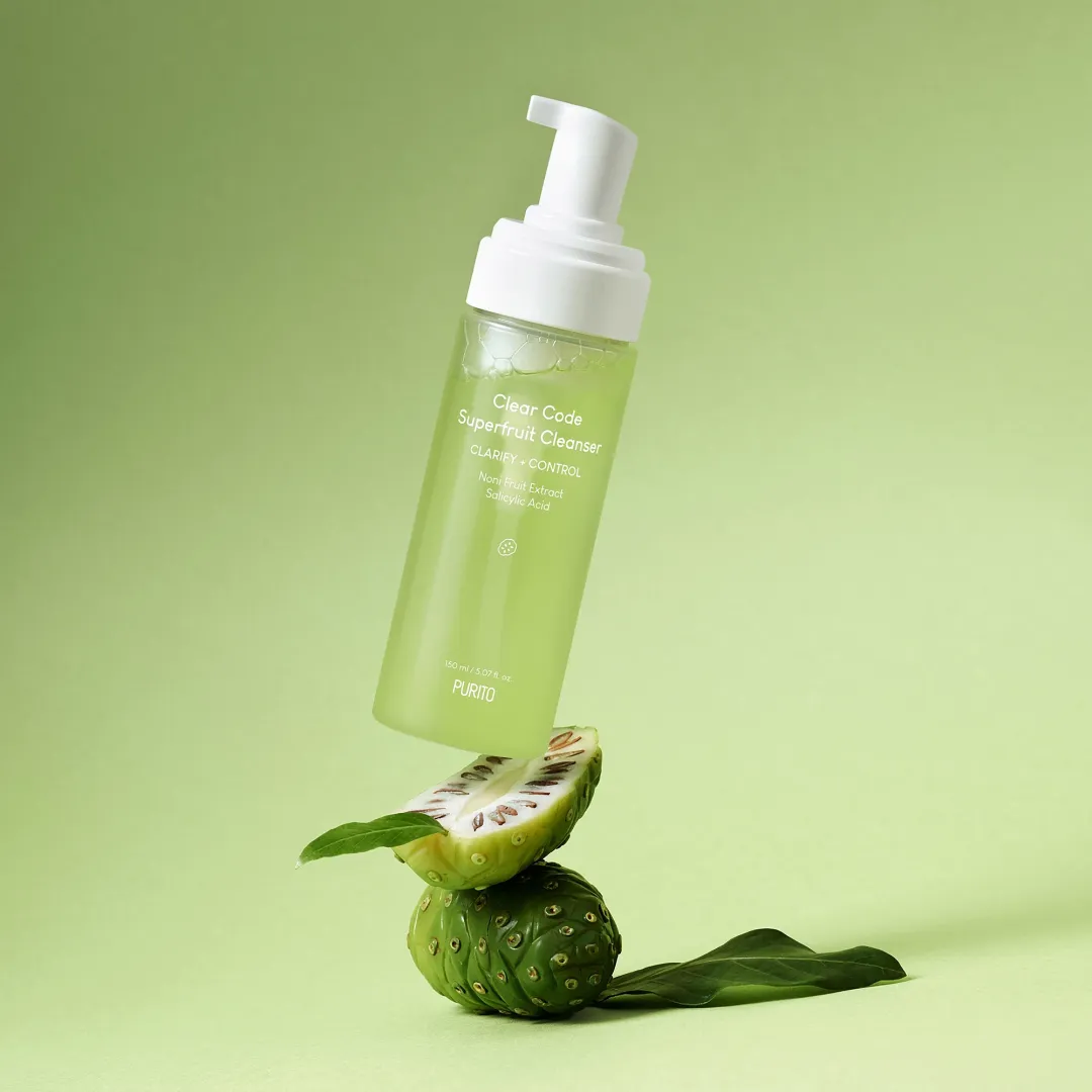 Пінка Clear Code Superfruit Cleanser розроблена для жирної, комбінованої, а також чутливої шкіри. Засіб містить екстракт плодів ноні, що заспокоює подразнення, а також BHA, що перешкоджає надлишку шкірного себуму. Пінка легко спінюється, забезпечуючи ніжне очищення та детоксикацію шкіри.