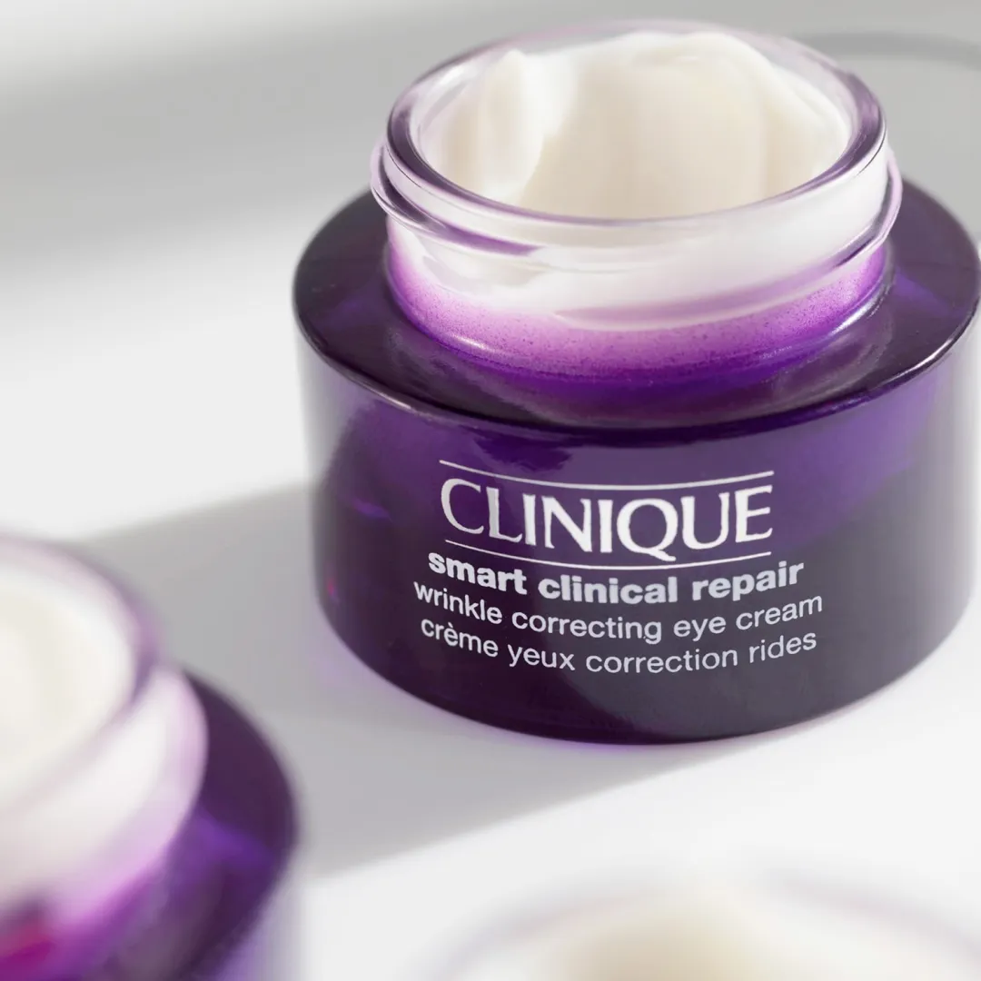 Clinique Smart Clinical Repair™ Wrinkle Correcting Eye Cream допомагає зміцнити структуру вашої шкіри, щоб отримати більш гладку, молоду шкіру.