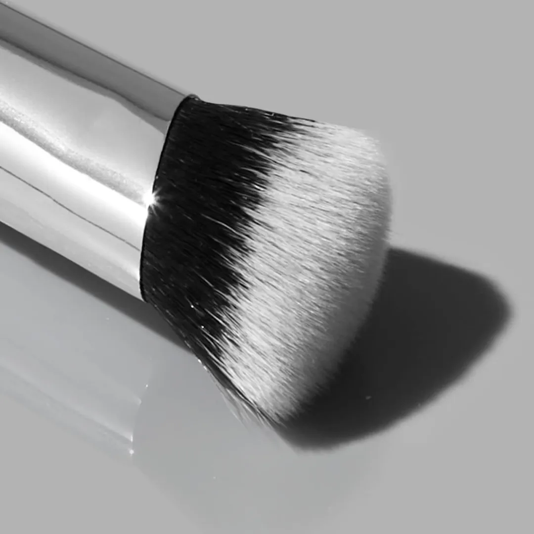 Ідеальний баланс щільно упакованих, але надзвичайно м'яких щетинок чарівним чином розтушовує продукт на шкірі всього за кілька рухів. Його унікальна куполоподібна форма імітує форму кінчика пальця, забезпечуючи неперевершену легкість, швидкість і бездоганне покриття. Цей професійно розроблений пензель був створений для оптимізації ефективності TRICLONE™ SKIN TECH CONCEALER.