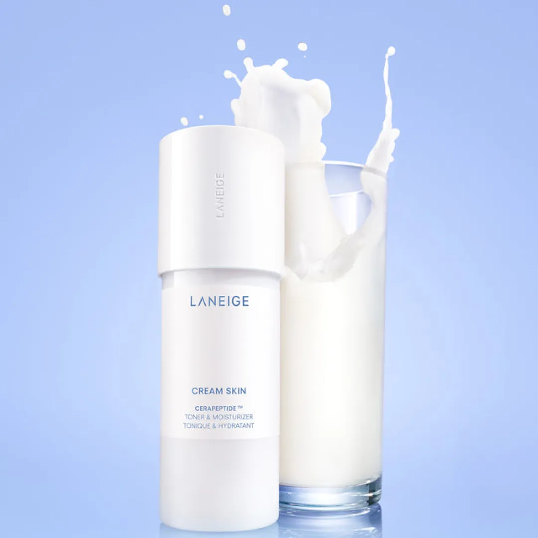 Оригінальний корейський молочний тонер у пляшці, що підлягає повторному наповненню, збагачений живильними церамідами та пептидами для сяючої, зволоженої шкіри.