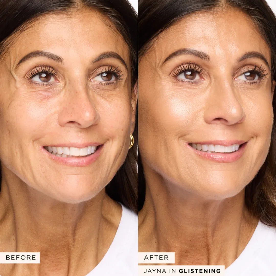 Ваше сяйво в пляшці! Цей сяючий бустер робить все: нанесіть його окремо, щоб отримати сяйво зсередини, змішайте з тональним кремом для ще більш зволоженого ефекту або використовуйте як хайлайтер для ефекту «скляної шкіри». Як би ви його не використовували, ви отримаєте зволожену, здорову на вигляд шкіру.