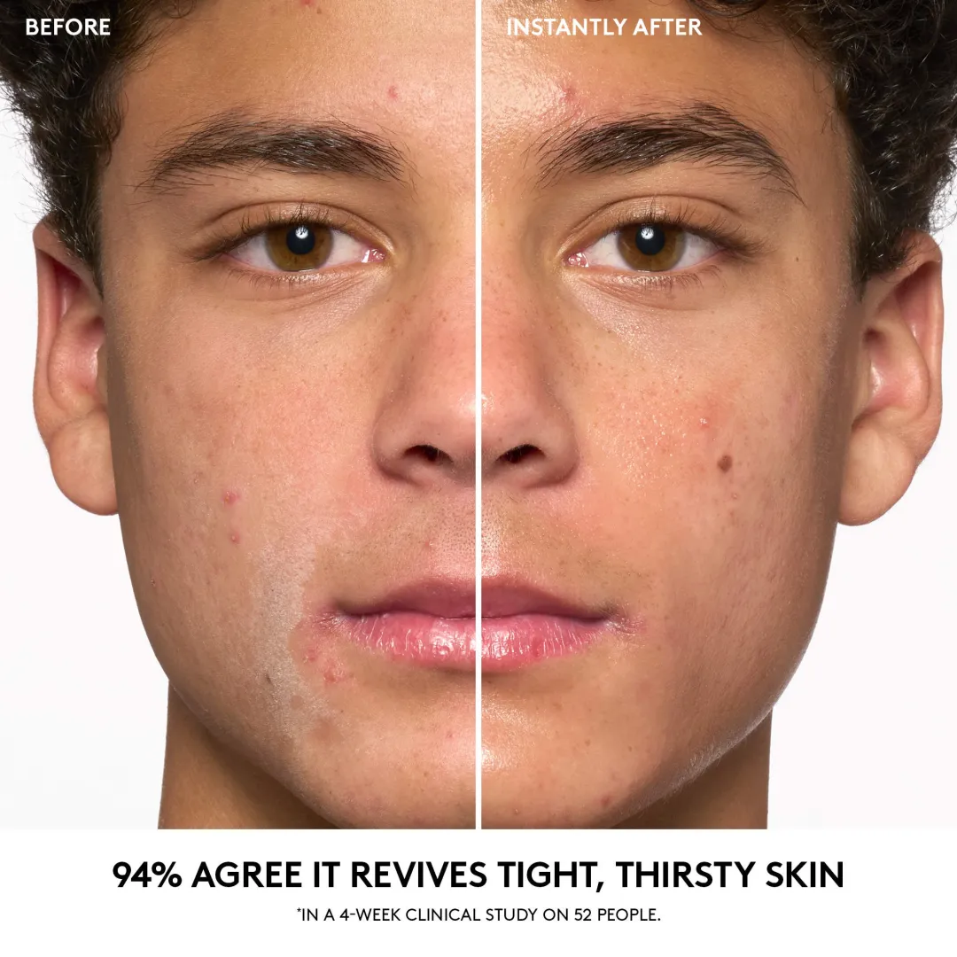 Ця зволожуюча маска для обличчя має консистенцію смузі, яка миттєво насичує шкіру вологою та зміцнює її вологісний бар'єр на 72 години. Вона насичена нашим зволожувальним комплексом SuperQuench Juice, поліглутаміновою та гіалуроновою кислотами, що надають об'єм, а також інкапсульованими бульбашками олії, що підсилюють зволоження. Як останній крок у вашій процедурі догляду за шкірою, ця приваблива гелева маска, яку не потрібно змивати, стане улюбленою для вашої шкіри — насолоджуйтесь нею.