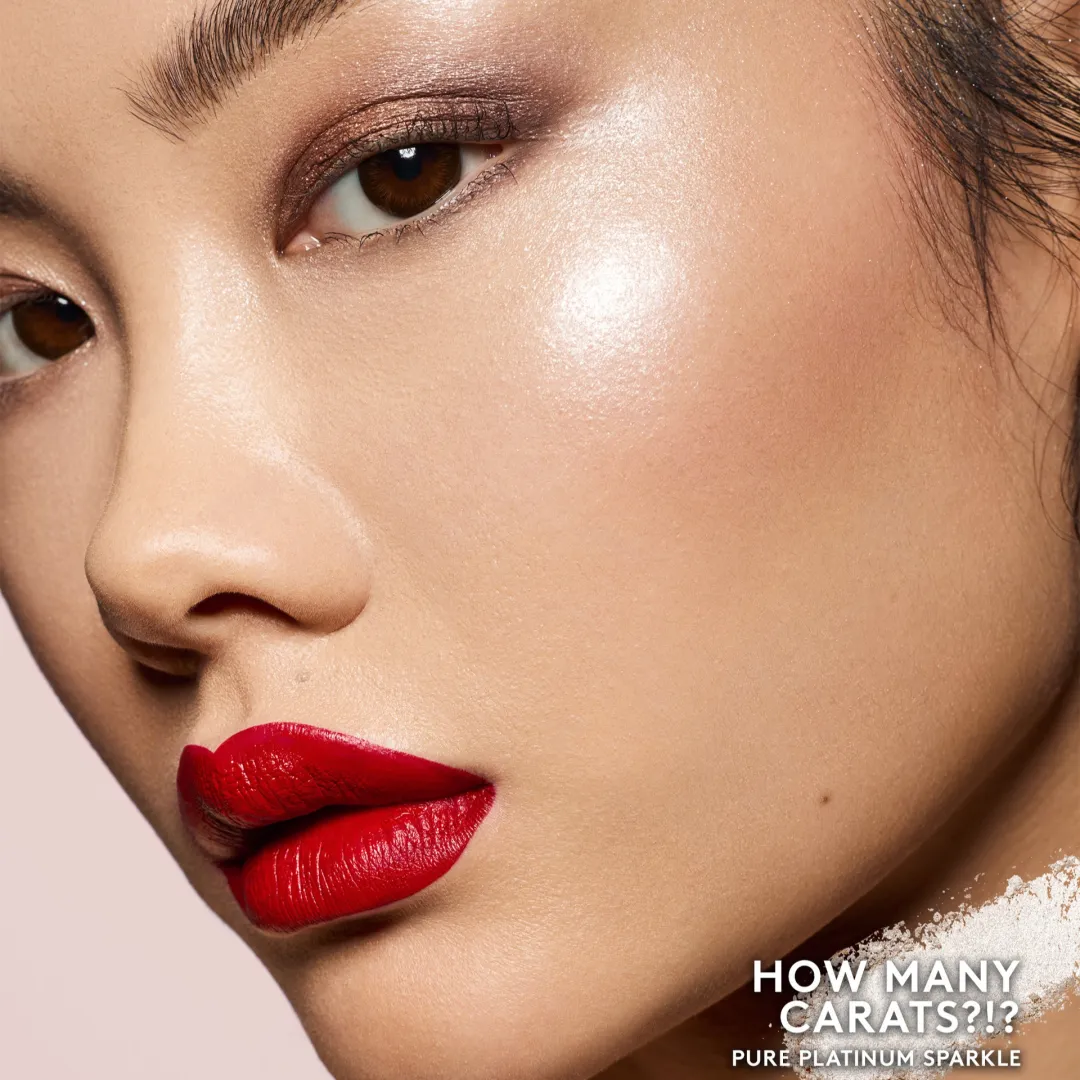 Унікальний хайлайтер з діамантовим пилом, який наноситься як 3D-блискуча вуаль, надаючи чистого, вражаючого блиску всьому обличчю та тілу.