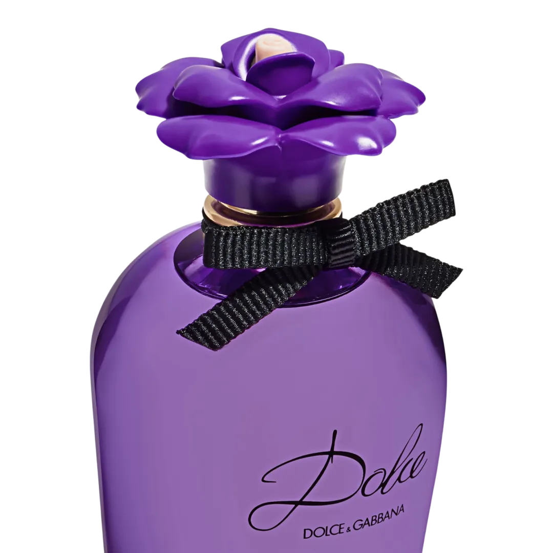 Флакон має вигнуту форму, яка повторює лінії ніжності, а його фіалковий відтінок наче створений для вечорів, коли небо набуває лавандового кольору. Кришечка у формі квітки, що вже стала впізнаваним символом колекції, прикрашена чорною стрічкою - акцент, такий самий елегантний, як і сама дівчина Dolce.