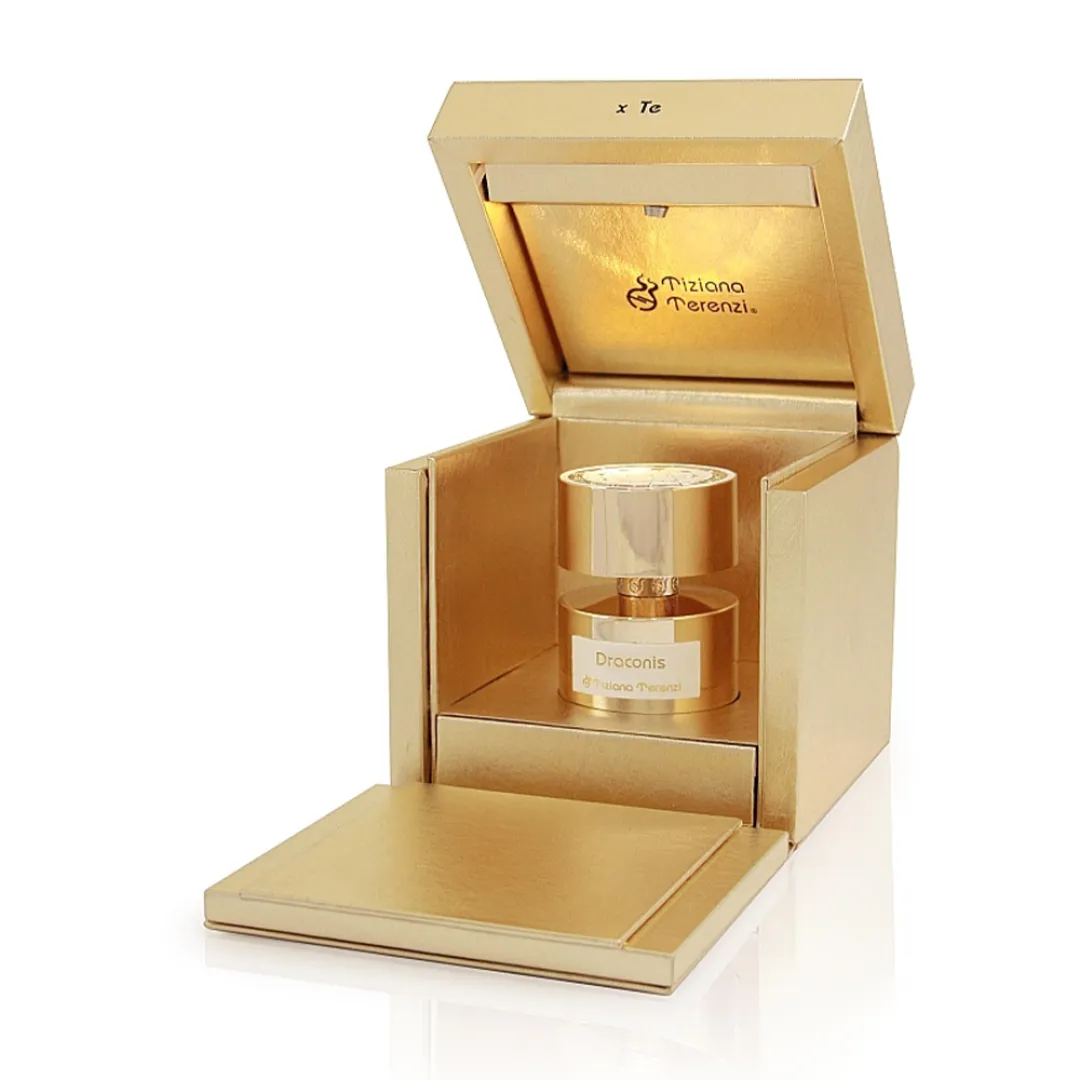 Колекція парфумів Tiziana Terenzi присвячена космосу, його незвіданим таємницям, яскравим зіркам і загадковим планетам. Draconis – одна з найбільш подібних за характеристиками до Сонця зірка, таємницю якої намагаються розгадати багато років. Можливо, поруч з нею існує планета, придатна до життя... Парфумер Паоло Теренці не зміг пройти повз цієї чудової зірки, присвятивши їй особливий аромат з «космічної» колекції. Композиція Tiziana Terenzi Draconis представлена в розкішному золотому флаконі, а її аромат призначений і для чоловіків, і для жінок.