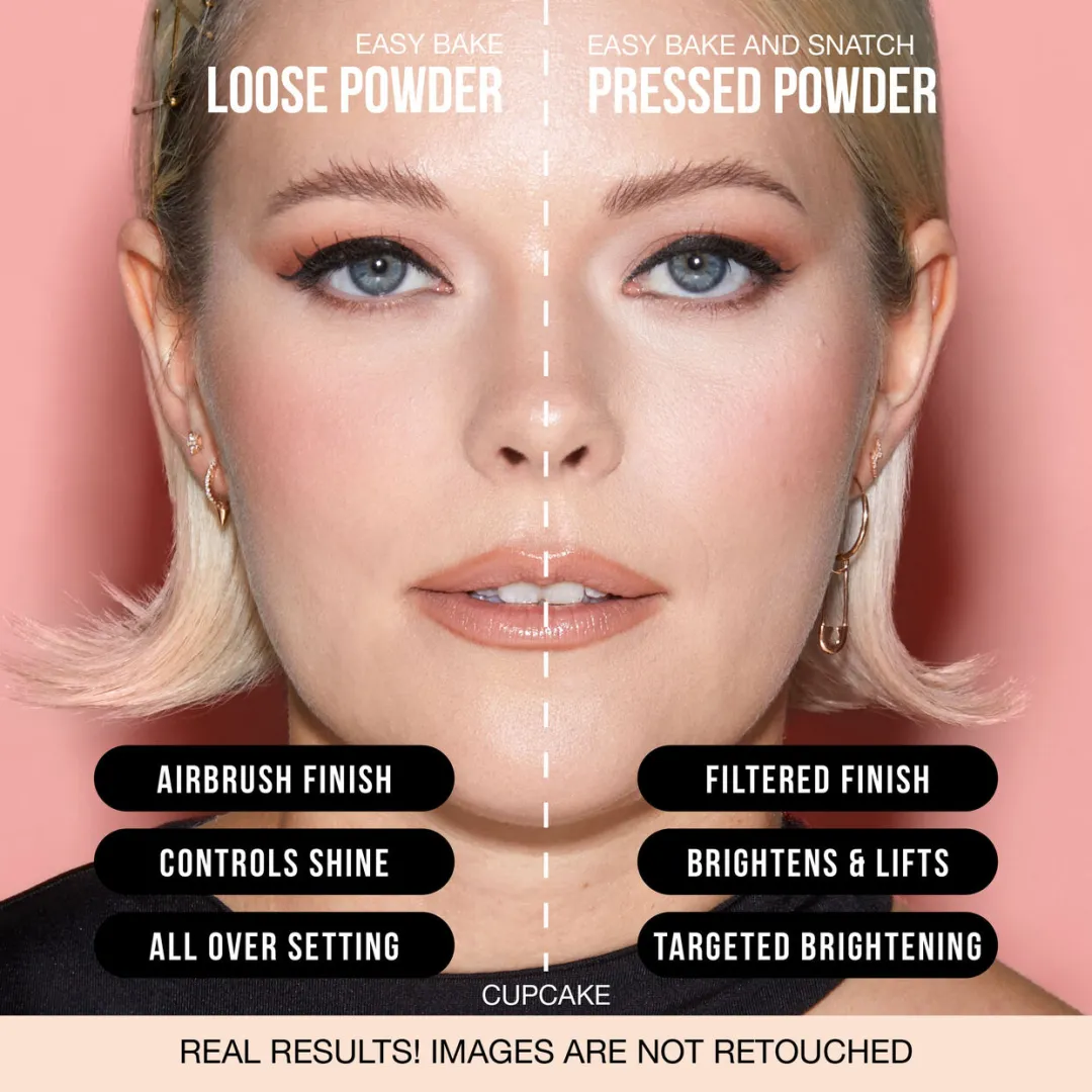 Ключ до миттєвого підтягнутого вигляду - пудра Easy Bake and Snatch з прецизійним спонжем, який миттєво освітлює та розмиває матовість, надаючи шкірі фільтрований фініш за лічені секунди.