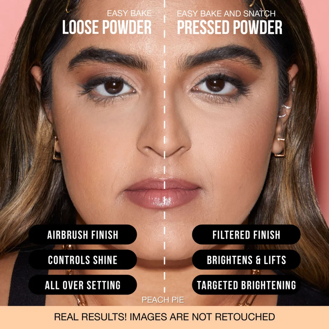 Ключ до миттєвого підтягнутого вигляду - пудра Easy Bake and Snatch з прецизійним спонжем, який миттєво освітлює та розмиває матовість, надаючи шкірі фільтрований фініш за лічені секунди.