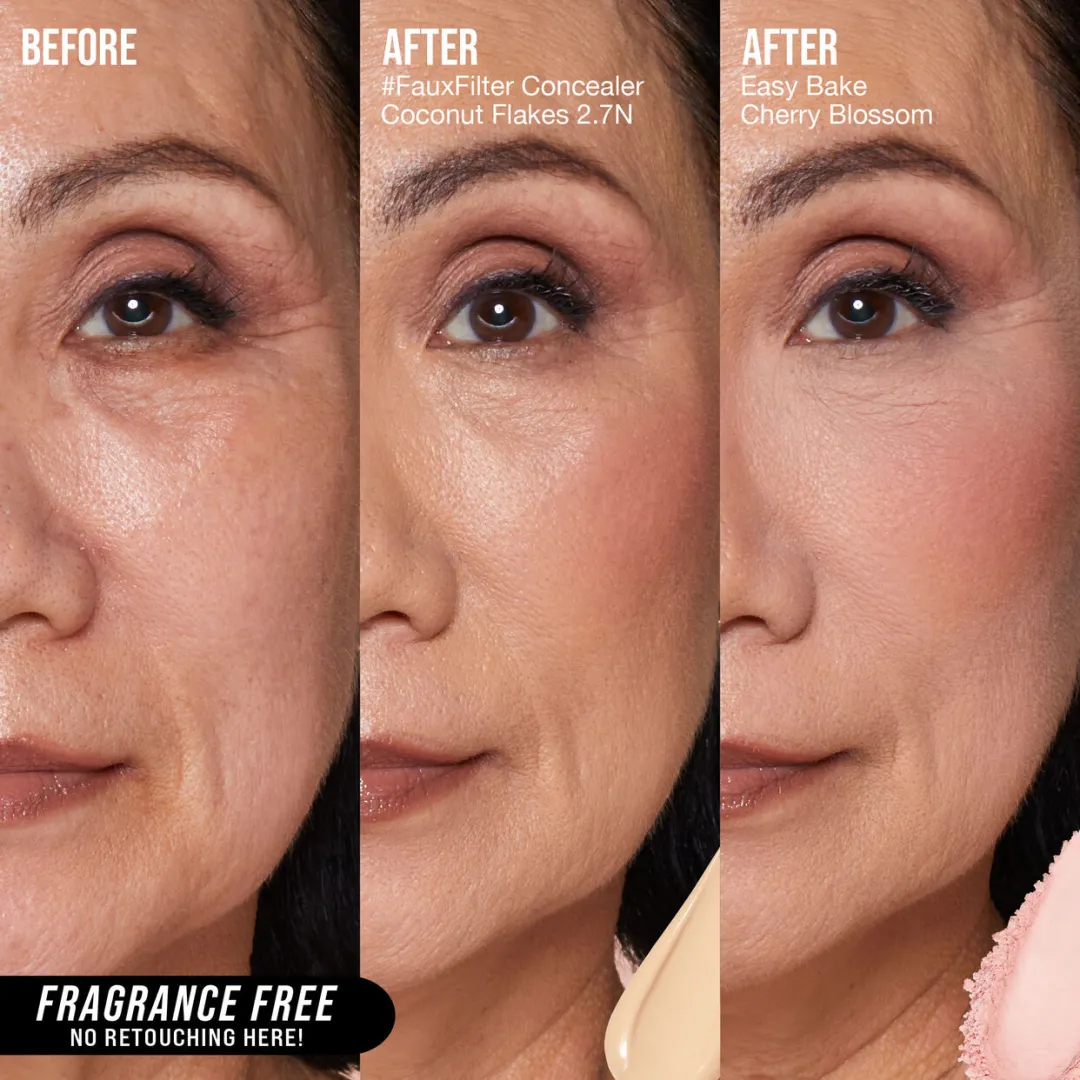 Нанесення пудри Easy Bake залишає на шкірі напівпрозору вуаль, створюючи матове покриття, яке контролює блиск, коригує колір і підкреслює різні контури обличчя без утворення складок і вицвітання - останній крок до аерографічного макіяжу.