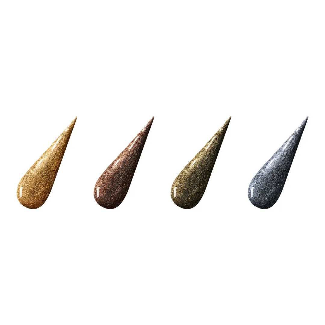 Нанесіть металеву підводку для очей безпосередньо на лінію росту вій для яскравого, мерехтливого кольору. Надайте інтенсивності, нашаровуючи колір, для сміливих, виразних очей.