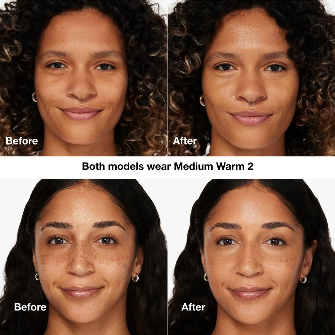 Безмасляна основа забезпечує легке покриття і яскраве покриття, яке надає шкірі природного, здорового сяйва.