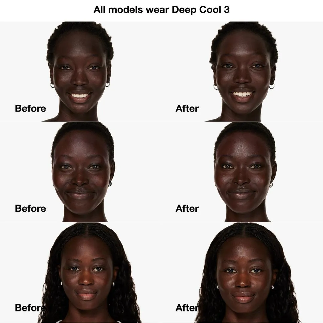 Безмасляна основа забезпечує легке покриття і яскраве покриття, яке надає шкірі природного, здорового сяйва.
