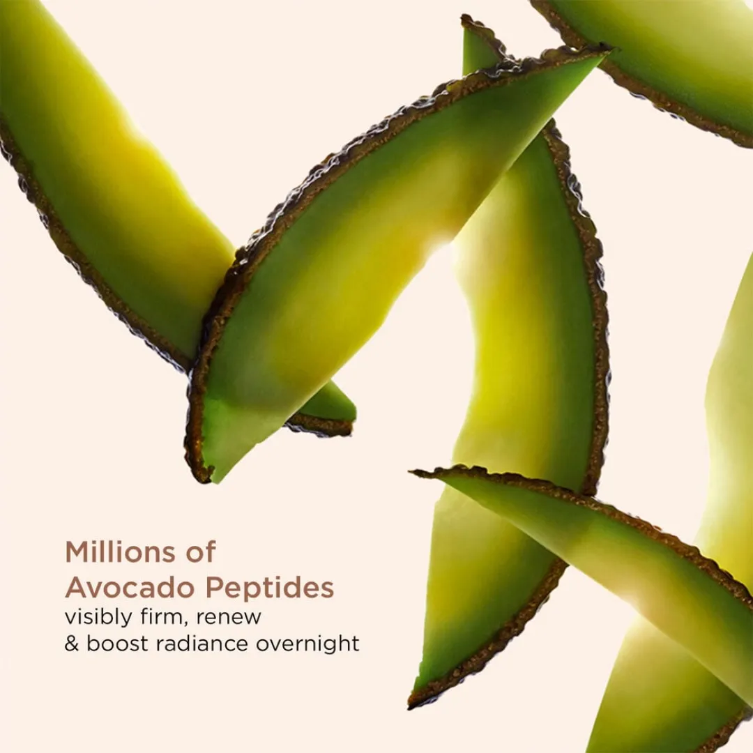 Розроблений для боротьби з видимими ознаками руйнування колагену, які починаються в середині 20-х років, Extra-Firming Night містить НОВУ технологію [Collagen]³ — потужну суміш колагенового поліпептиду, створеного за допомогою біотехнологій, екстрактів пеканового дерева та органічного мітракарпуса — інгредієнтів, які підтримують колаген шкіри, роблячи її помітно більш пружною. Ніацинамід вирівнює тон шкіри та сприяє більш світлому, рівномірному кольору обличчя, а мільйони пептидів авокадо в кожній баночці оптимізують нічне відновлення, роблячи шкіру більш пружною, еластичною та сяючою після пробудження.