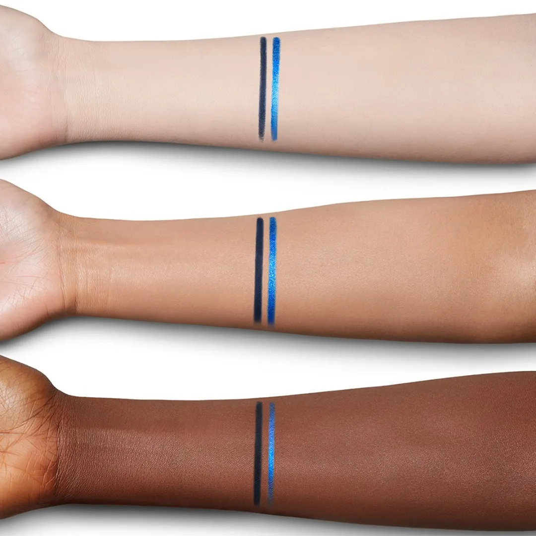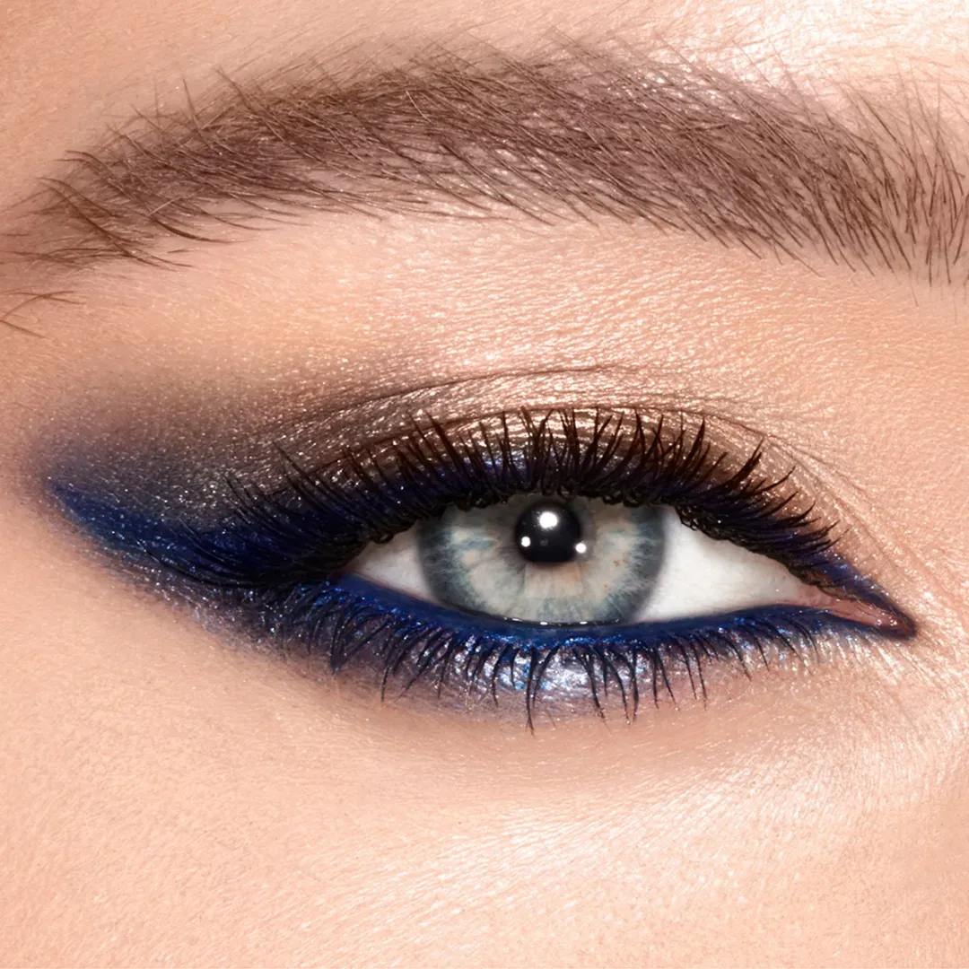 Відкрийте для себе дует лайнерів Matte & Metallic Eye Colour Magic Liner Duo. Шарлотта використала закони контрасту кольорів, щоб створити миттєвий ЕФЕКТ ІСКРИ, який змушує блакитні очі сяяти! Як хайлайтер для очей, цей двосторонній лайнер працює на максимум: