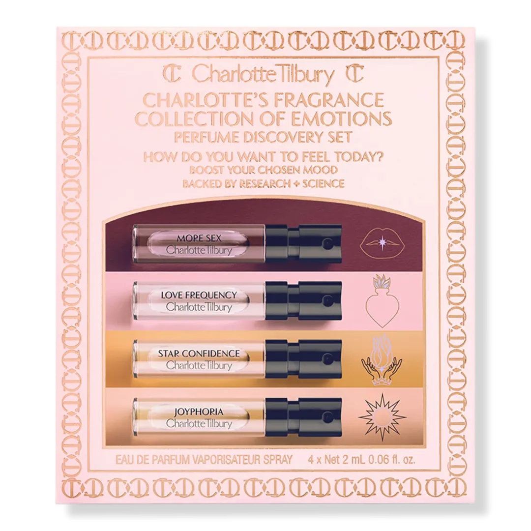 Набір містить чотири аромати, що пробуджують емоції: More Sex, Love Frequency, Star Confidence і Joyphoria — аромати, створені, щоб діяти як невидима суперсила, що викликає емоції: бажання, любов, впевненість у собі і щастя. Вони були створені в рамках першої колекції ароматів Charlotte Tilbury, Emotions, що характеризується інтенсивними нотами і стійким шлейфом.