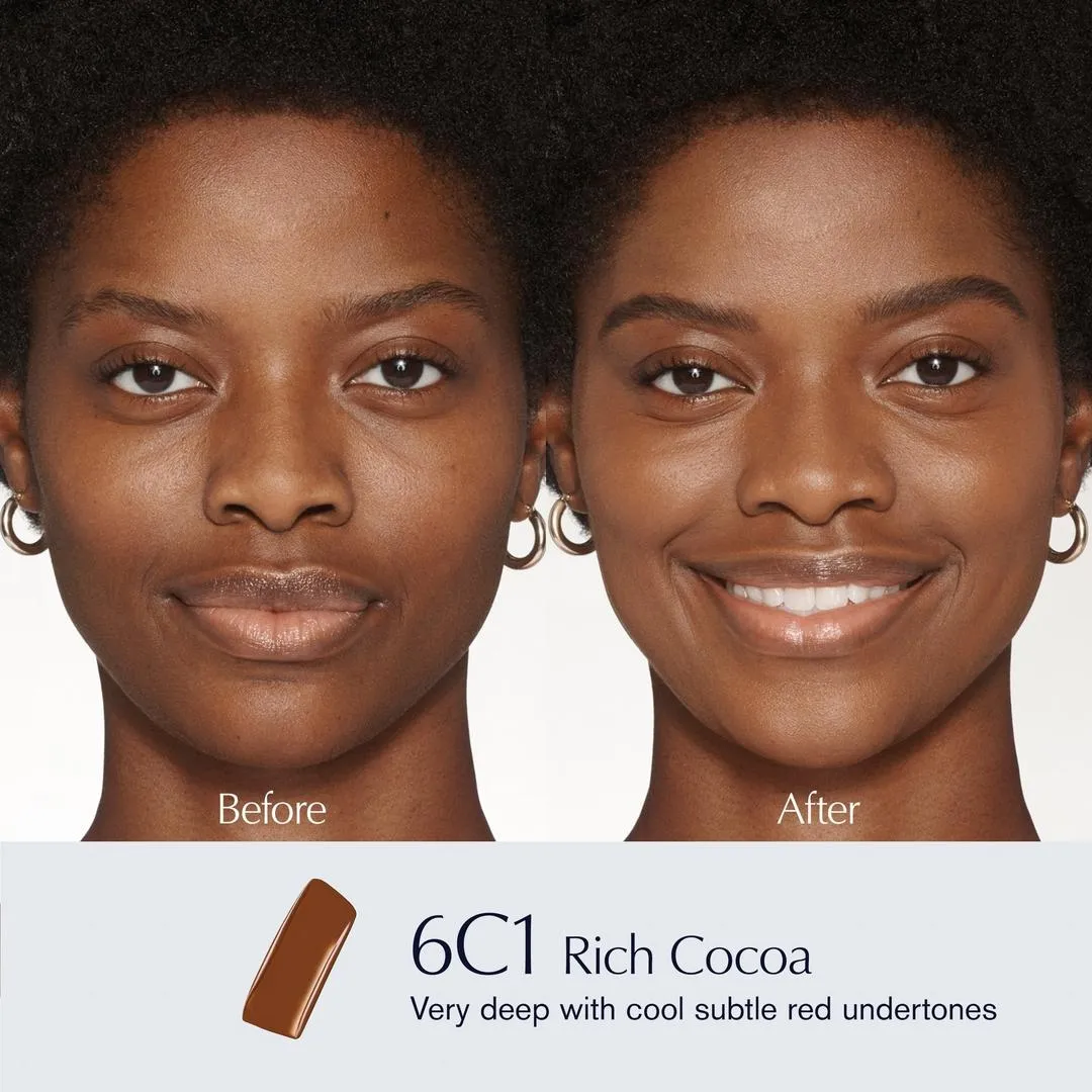 Цілоденне носіння з точним відтворенням кольору. Вирівнює. Згладжує. Зволожує. Згодом покращує стан шкіри, надаючи їй м'якого сяйва.