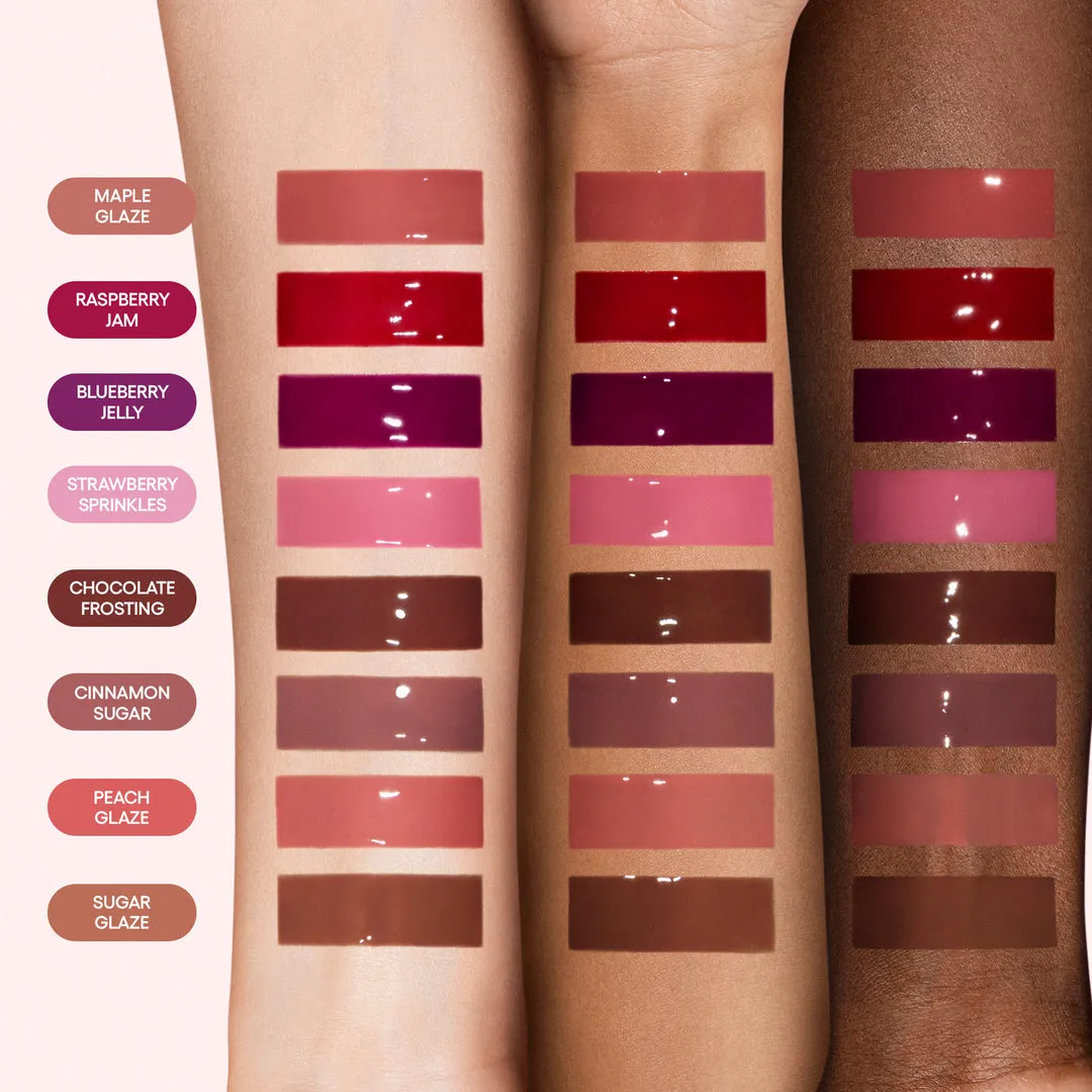 Maple Glaze: DIISOSTEARYL MALATE, BIS-BEHENYL/ISOSTEARYL/PHYTOSTERYL DIMER DILINOLEYL DIMER DILINOLEATE, BIS-DIGLYCERYL POLYACYLADIPATE-2, HYDROGENATED POLYISOBUTENE, OCTYLDODECANOL, MICROCRYSTALLINE WAX / CERA MICROCRISTALLINA / CIRE MICROCRISTALLINE, SYNTHETIC WAX, FRAGRANCE / PARFUM, POLYGLYCERYL-2 TRIISOSTEARATE, PUNICA GRANATUM SEED OIL, RED 30 (CI 73360), SILICA DIMETHYL SILYLATE, RED 28 LAKE (CI 45410), YELLOW 6 LAKE (CI 15985), IRON OXIDES (CI 77499), RED 7 LAKE (CI 15850), WATER / AQUA / EAU, TOCOPHEROL, SQUALANE, CERAMIDE NP, GLYCINE MAX (SOYBEAN) POLYPEPTIDE, 1,2-HEXANEDIOL, PROPYLENE GLYCOL, BUTYLENE GLYCOL, POLYGLUTAMIC ACID, SODIUM HYALURONATE, ETHYLHEXYLGLYCERIN