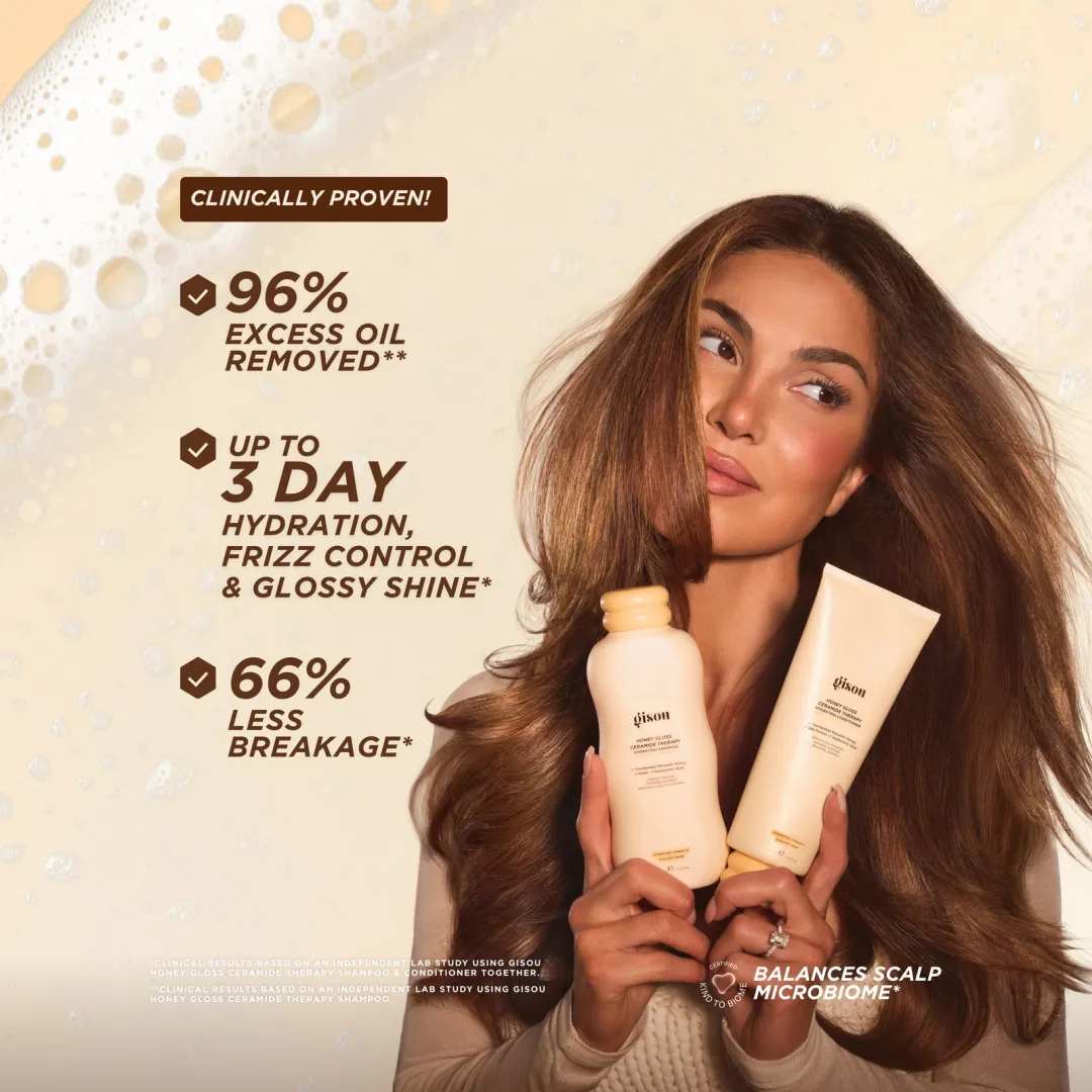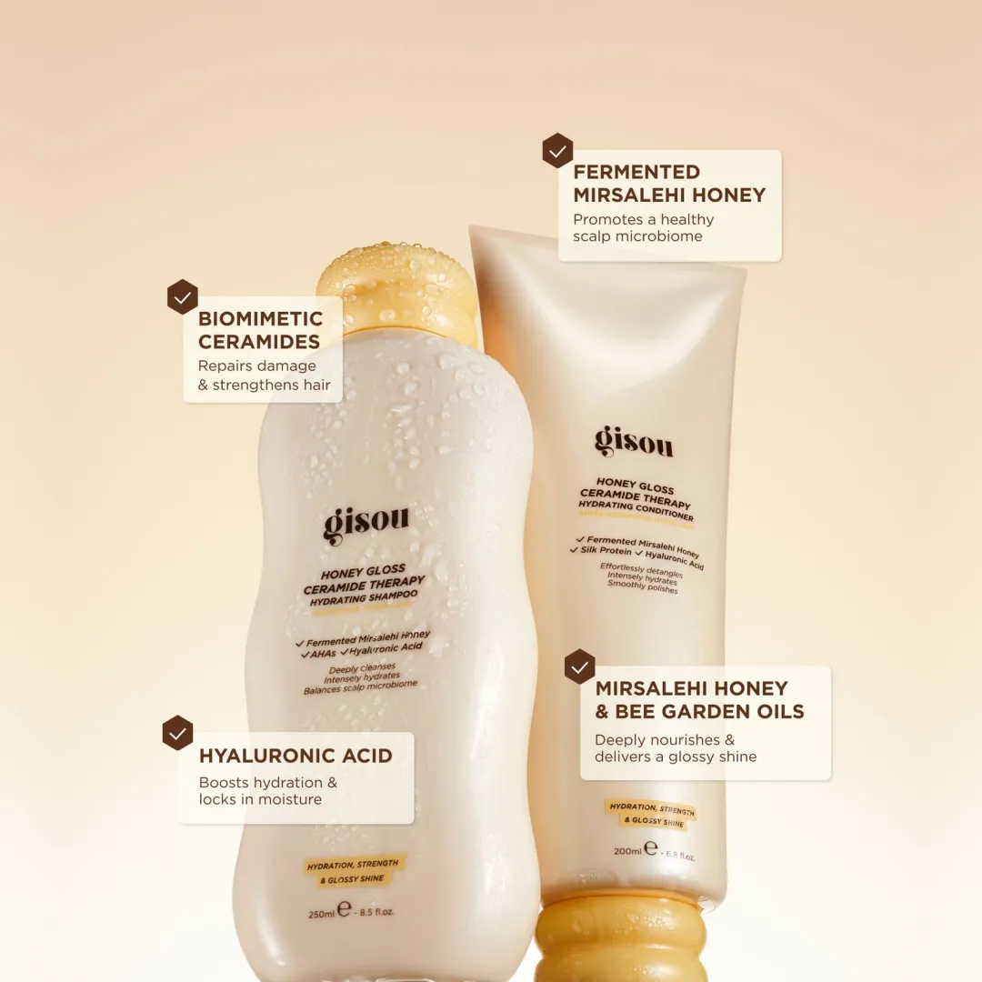 Завдяки меду Mirsalehi та гіалуроновій кислоті це тріо є секретом блискучого волосся від коренів до кінчиків. Почніть свою процедуру з глибокого очищення та догляду за допомогою науково доведеного дуету шампуню та кондиціонера Honey Gloss Ceramide Therapy. Потім створіть бажаний образ за допомогою крему для укладання волосся 5-в-1 Honey Milk, який, як науково доведено, забезпечує захист від високих температур, зволоження, контроль пухнастості, блиск та гнучку фіксацію для будь-якої зачіски.