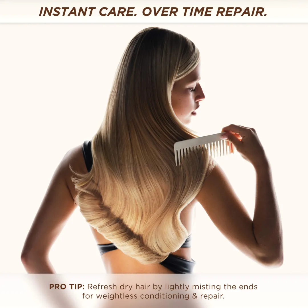 Легкий, як молоко, але насичений, як мед, цей ультратонкий спрей активно відновлює волосся ззовні. Науково доведено, що вдосконалена формула відновлює та захищає волокна волосся на молекулярному рівні, зберігаючи цілісність кератину, а також зволожує, розгладжує кучерявість та надає блиску.