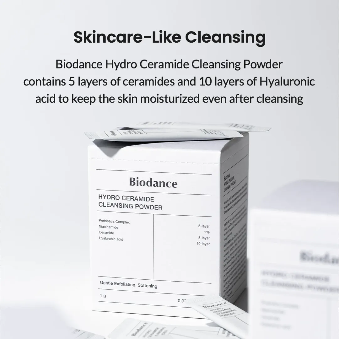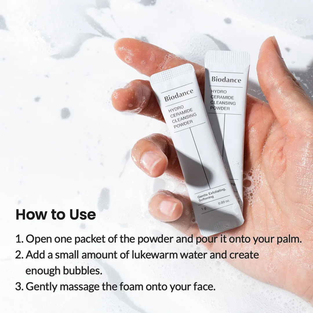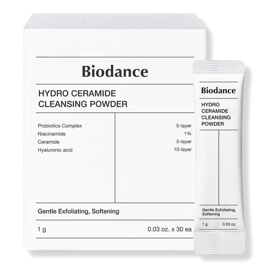 Очищуюча пудра Biodance Hydro Ceramide містить п'ять шарів церамідів і десять шарів гіалуронової кислоти, щоб зберегти шкіру зволоженою навіть після очищення.