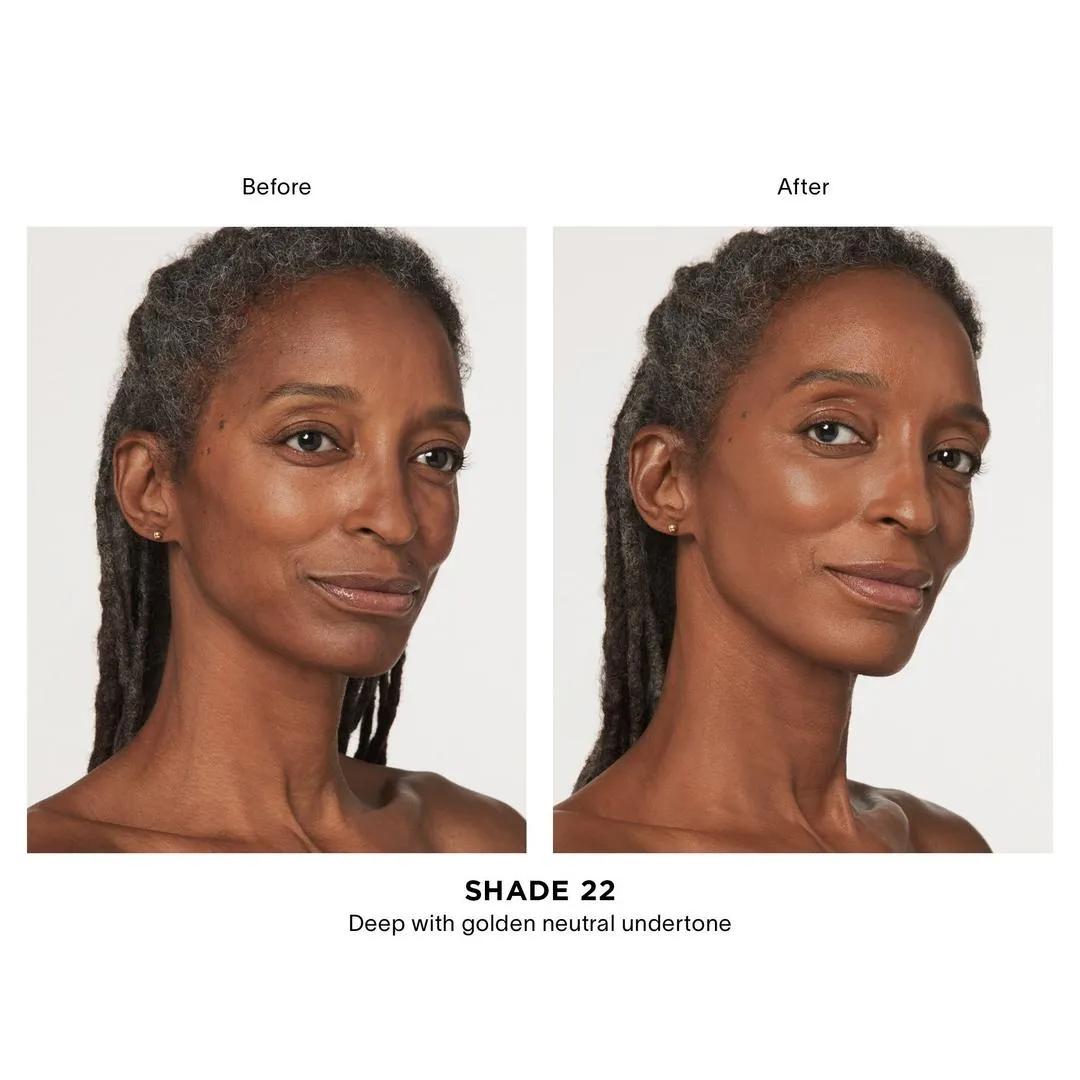 Акуратно розподіліть засіб по шкірі, використовуючи пензель Ambient Soft Glow Foundation Brush, поступово нашаровуючи до бажаного рівня покриття для досягнення природного та бездоганного результату.