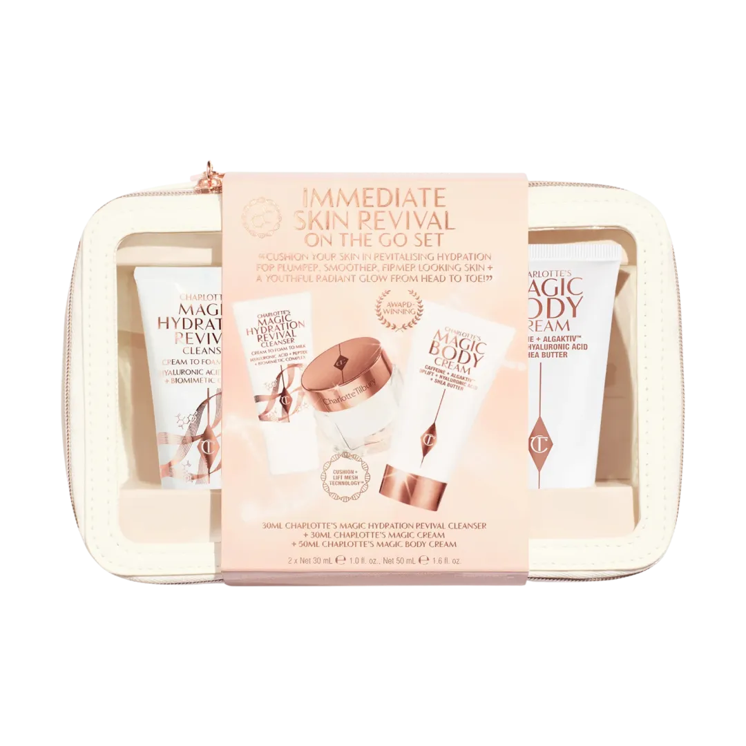 Charlotte Tilbury Immediate Skin Revival On The Go Set Набір (cleanser/30ml + magic cream/15ml + body cream/50ml) 30 ml + 15 ml + 50 ml