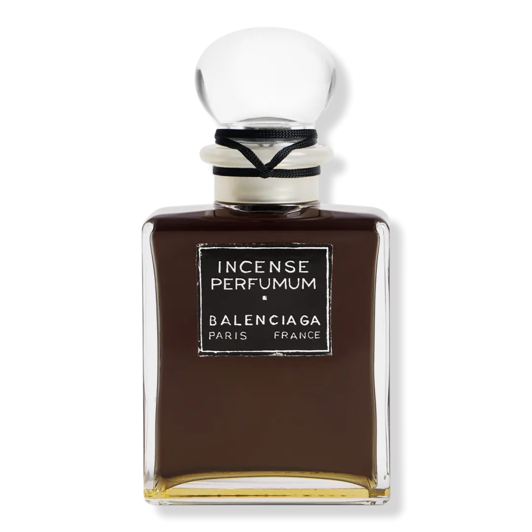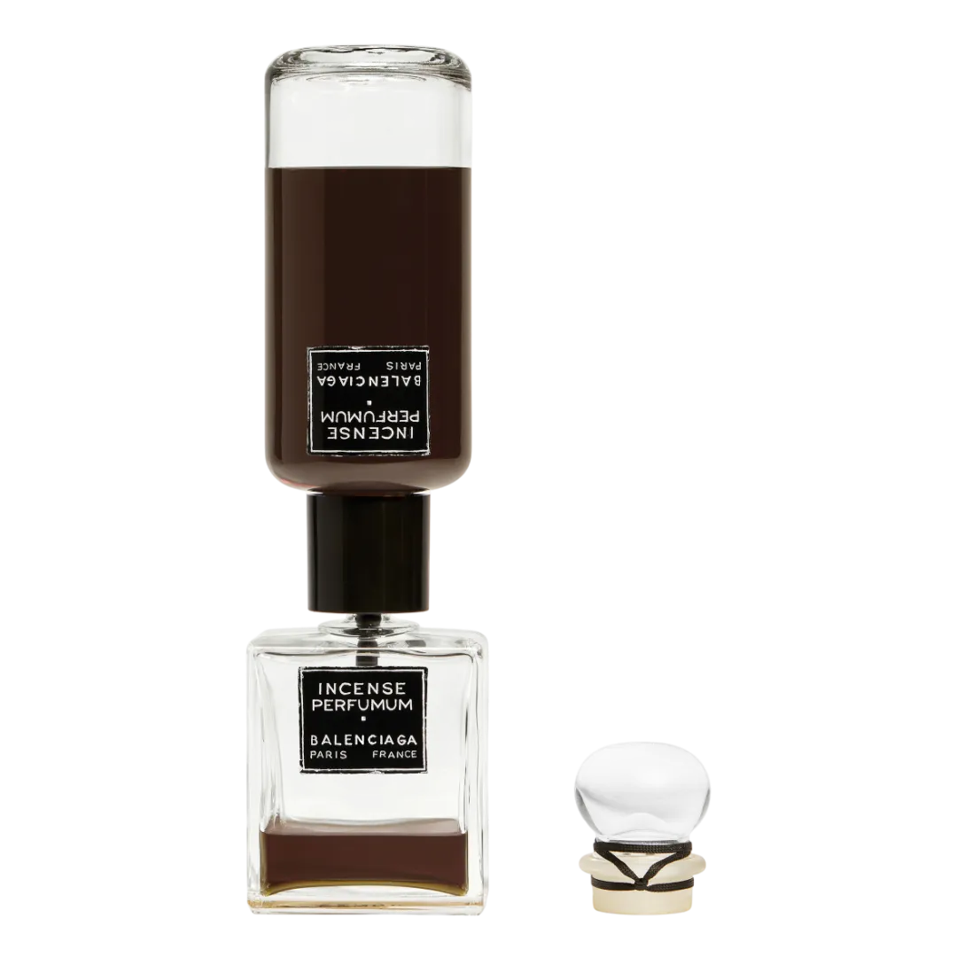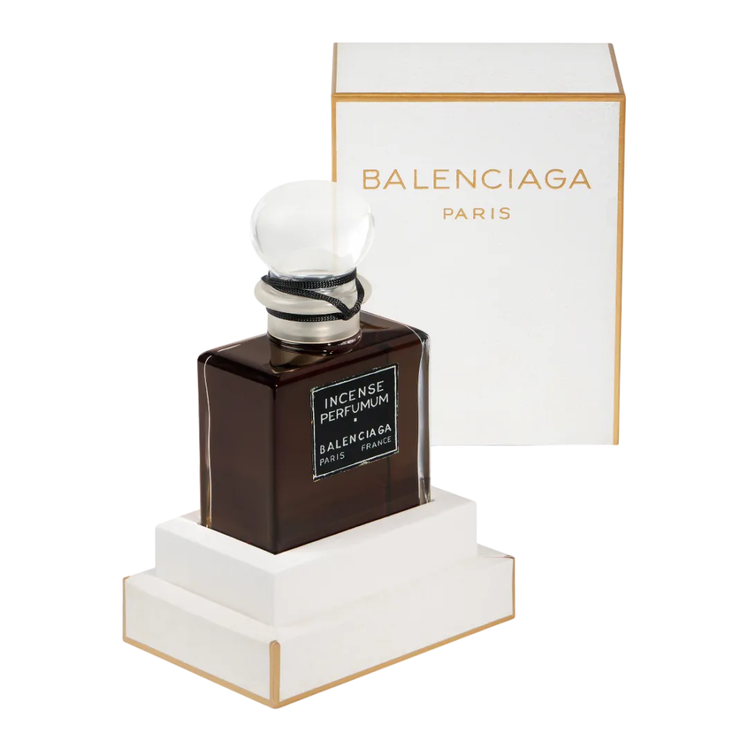 Incense Perfumum виходить за межі часу, несучи послання в димі пахощів. Його чорний колір є одою кольору, який залишався невід'ємною частиною творчості М. Баленсіаги протягом усієї його кар'єри, створюючи непомітне полотно для його досліджень контрастних форм, структури та об'єму.