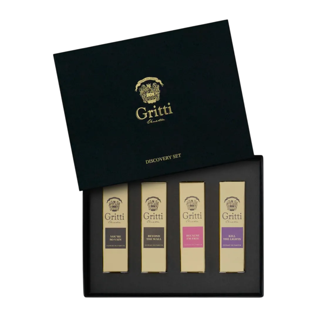 Відкрийте для себе світ колекції Ivy за допомогою набору пробників в елегантній чорній коробці, прикрашеній логотипом Gritti Venetia.