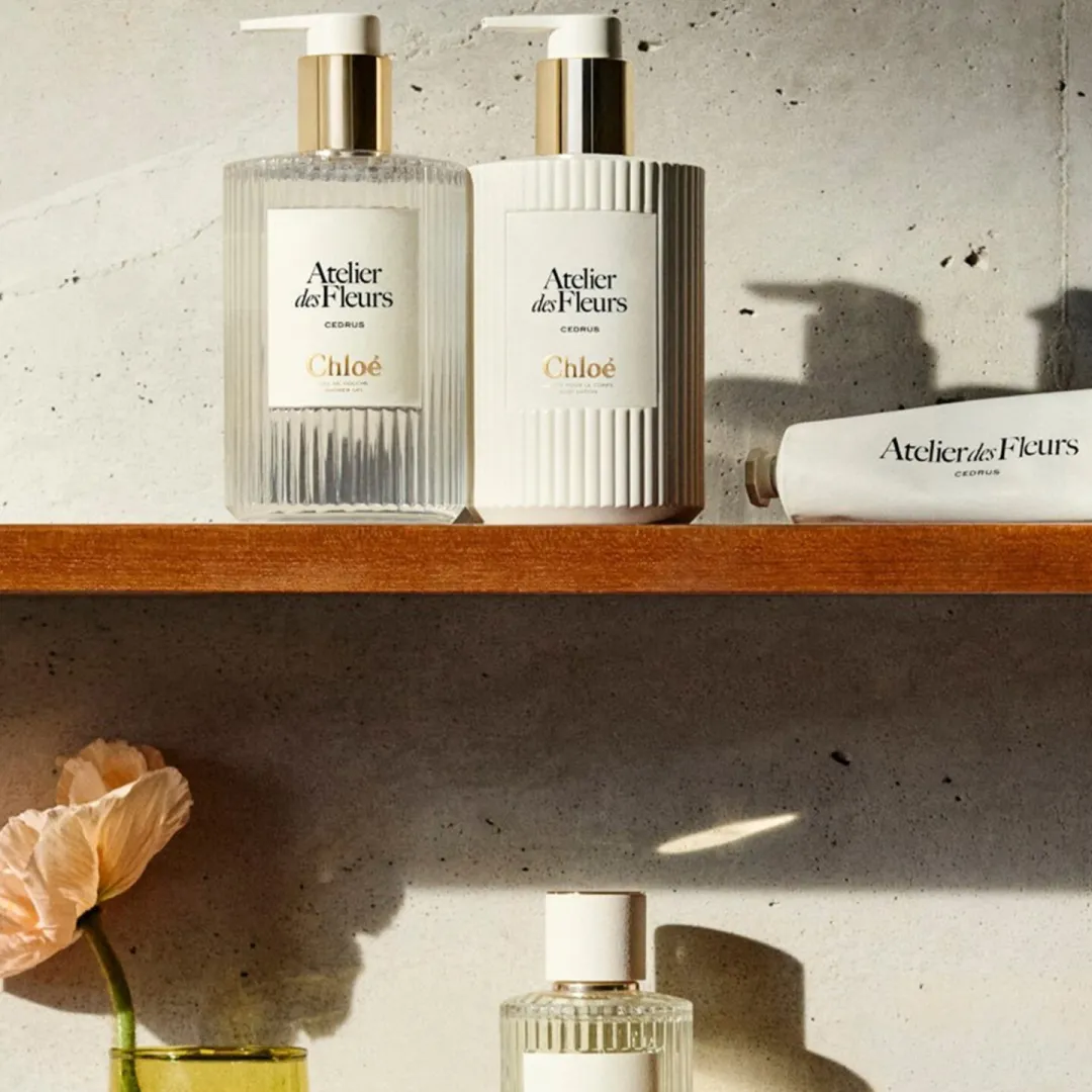 Chloé розширює лінійку ароматів Atelier des Fleurs за допомогою l'Atelier du Bain, серії засобів для ванни та тіла, що включає гелі для душу та лосьйони, які містять найвишуканіші рослинні інгредієнти.