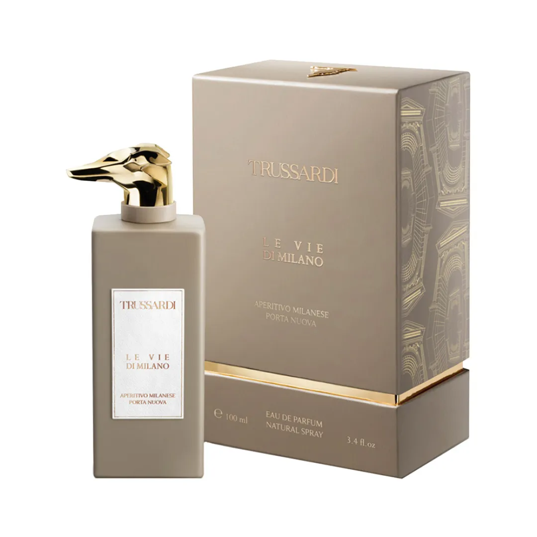 На початку парфумерної композиції виступають акорди листя мандарина, яскравого калабрійского бергамота і неролі. За ними слідують глибокі відтінки геліотропа, амарето та пудрового ірису. Їхня виразність м'яко відтінена базовими нотами: солодкувата ваніль, бензоїн і бальзамічна амбра. Trussardi Le Vie Di Milano Aperitivo Milanese Porta Nuova – стиль і настрій району Мілана.