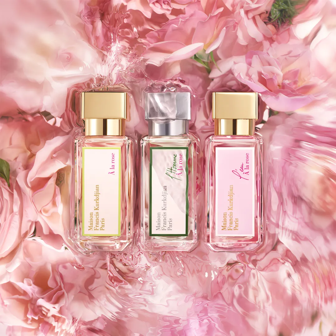 Туалетна вода «À la rose» — це данина жіночності, надзвичайно жіночний аромат, що вшановує дует виняткових троянд: дамаську троянду з Болгарії та центіфолію з Грасса. Немов дотик пелюсток троянд, зібраних на світанку, ця туалетна вода розкривається на шкірі ніжним квітково-фруктовим ароматом. Ця крапля парфумованої води, що віддзеркалює букет із чотирьохсот щойно розквітлих троянд, випромінює сяйво та легкість.
