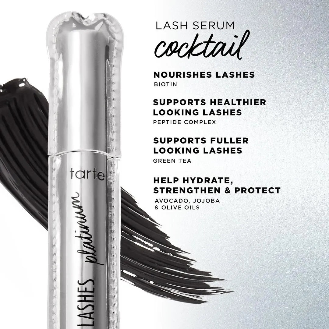 Революційна тонована туш для вій з ексклюзивним коктейлем Platinum Lash Serum Cocktail для міцніших і здоровіших вій.