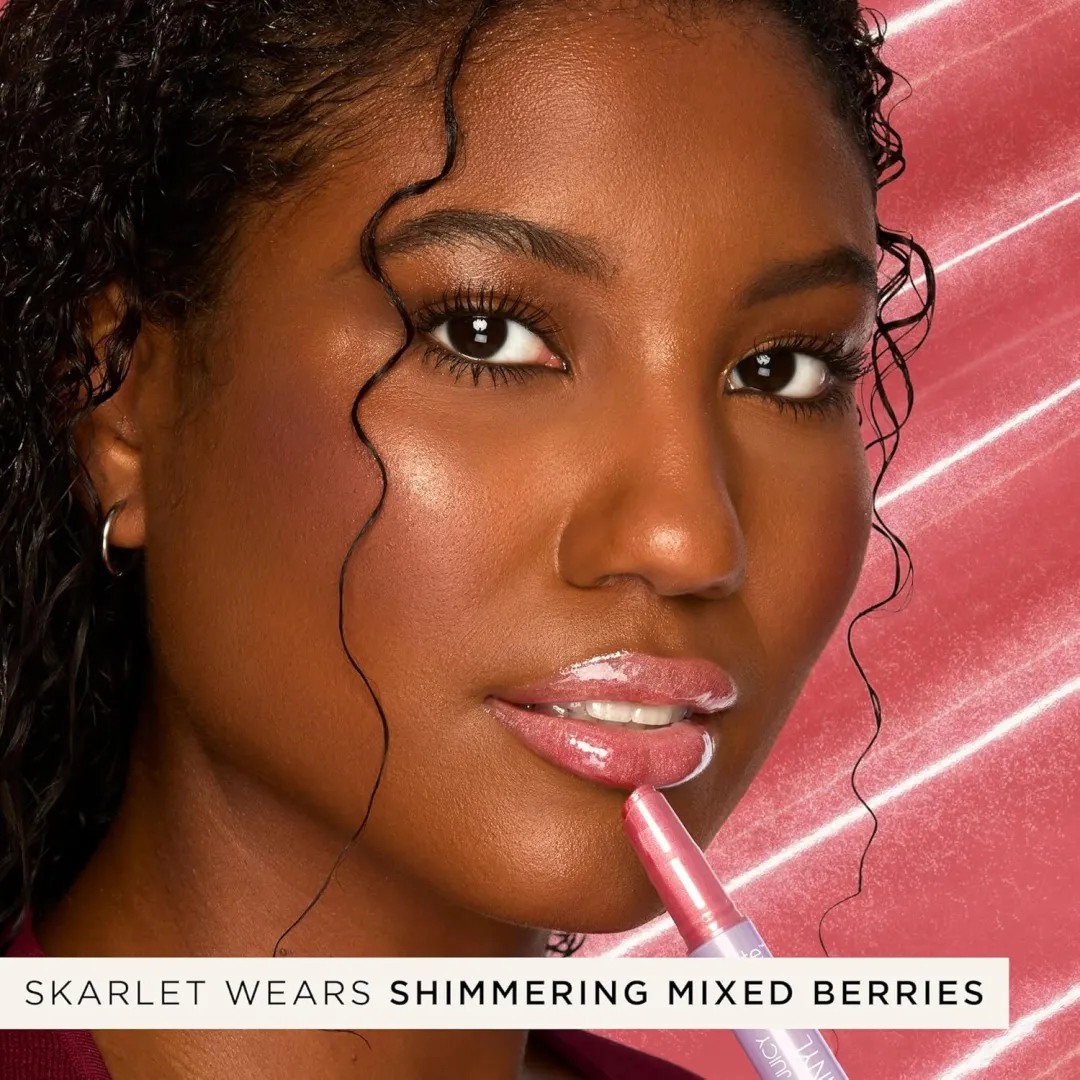 Ingredients: Dextrin Isostearate, phytosteryl/isostearyl/cetyl/stearyl/behenyl dimer dilinoleate, diisostearyl malate, dimer dilinoleyl dimer dilinoleate, synthetic wax, vitis vinifera (grape) seed oil, passiflora edulis seed oil, citrullus lanatus (watermelon) fruit extract, citrus limon (lemon) fruit extract, euterpe oleracea fruit extract, fragaria vesca (strawberry) fruit extract, lycium barbarum fruit extract, malpighia punicifolia (acerola) fruit extract, passiflora incarnata fruit extract, prunus persica (peach) fruit extract, punica granatum fruit extract, vaccinium angustifolium (blueberry) fruit extract, vaccinium macrocarpon (cranberry) fruit extract, tocopherol, sodium hyaluronate, flavor/aroma, phenoxyethanol, benzyl benzoate, tocopheryl acetate, triethoxycaprylylsilane, ethylhexyl palmitate, benzyl alcohol, trihydroxystearin, glucomannan. (+/-): Titanium Dioxide (CI 77891), iron oxides (CI 77491, CI 77492, CI 77499), red 6 lake (CI 15850), red 7 lake (CI 15850), yellow 5 lake (CI 19140), yellow 6 lake (CI 15985), red 40 lake (CI 16035), blue 1 lake (CI 42090).