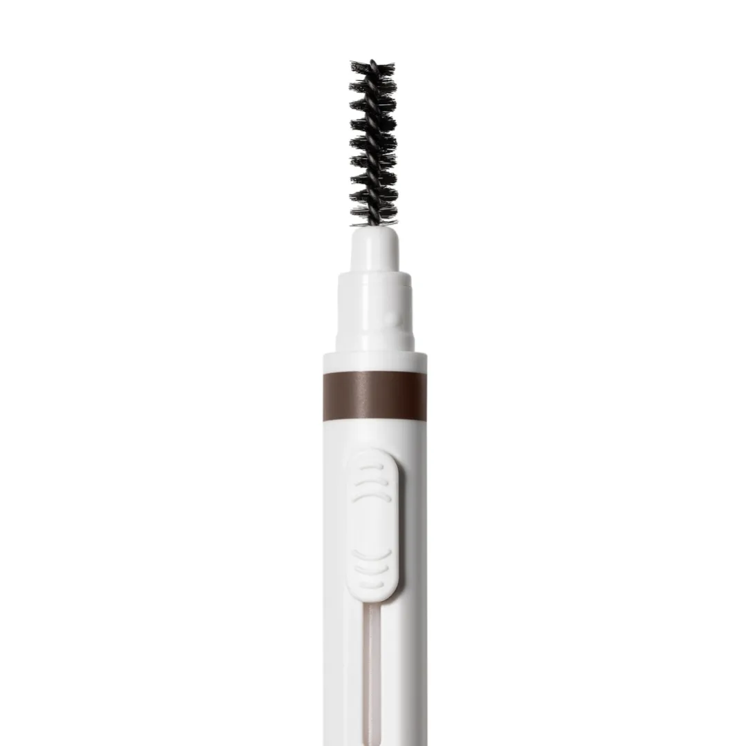 Тонкий край леза забезпечує надточне промальовування волосків і створює глибину, тоді як похилений бік дозволяє швидко окреслити, заповнити та відтінити брови. Спеціальна щіточка спуллі рівномірно розподіляє колір для природного ефекту.