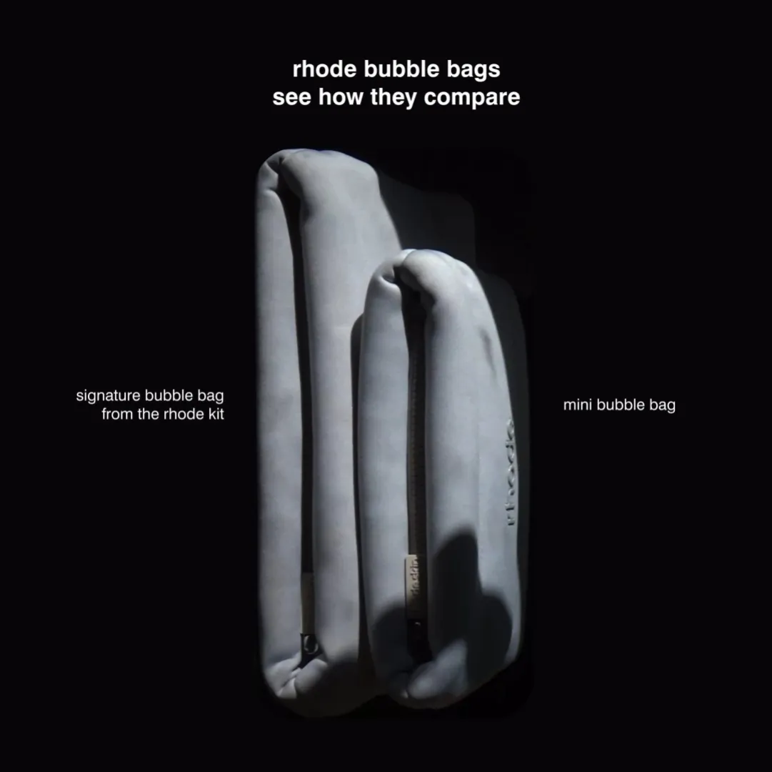 Фірмова сумка Rhode Bubble Bag у міні-версії. Ідеально підходить для того, щоб покласти її в сумочку і взяти з собою в подорож, щоб ваші улюблені продукти Rhode завжди були під рукою. Вміщає 2-3 великі засоби для догляду за шкірою або 5 міні-засобів.